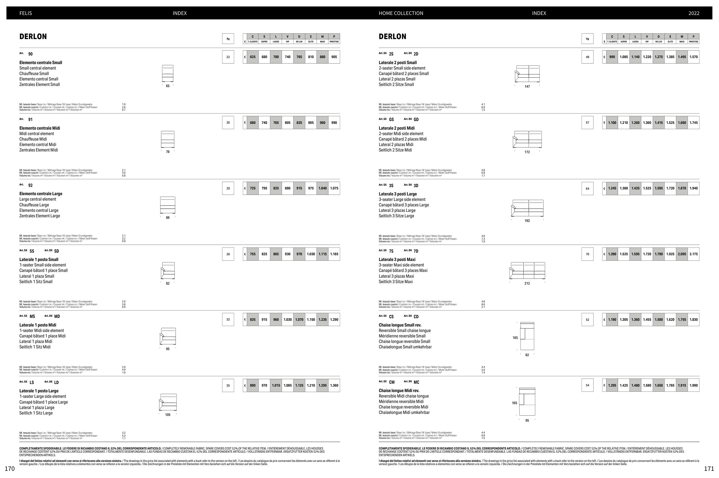 DE RECHANGE COÛTENT 52% DU PRIX DE L’ARTICLE CORRESPONDANT. / TOTALMENTE DESENFUNDABLE. LAS FUNDAS DE RECAMBIO CUESTAN EL 52% DEL CORRESPONDIENTE ARTÍCULO. / VOLLSTÄNDIG ENTFERNBAR. ERSATZFUTTER KOSTEN 52% DES