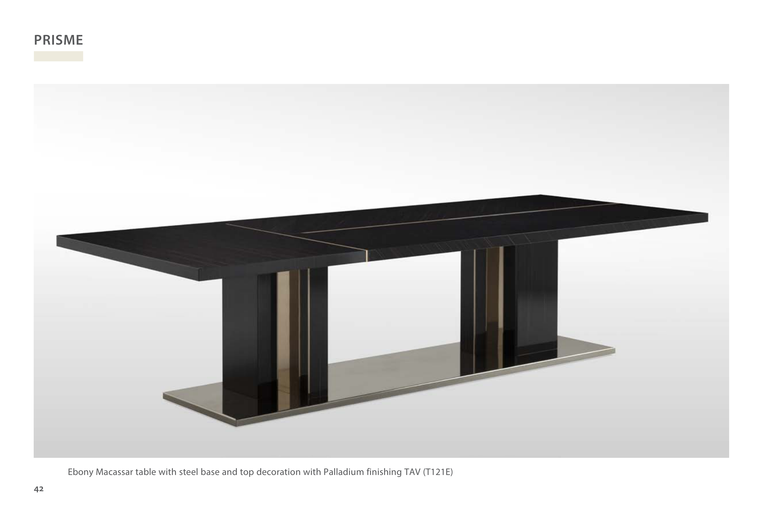 Ebony Macassar table with steel base and top decoration with Palladium finishing TAV (T121E)