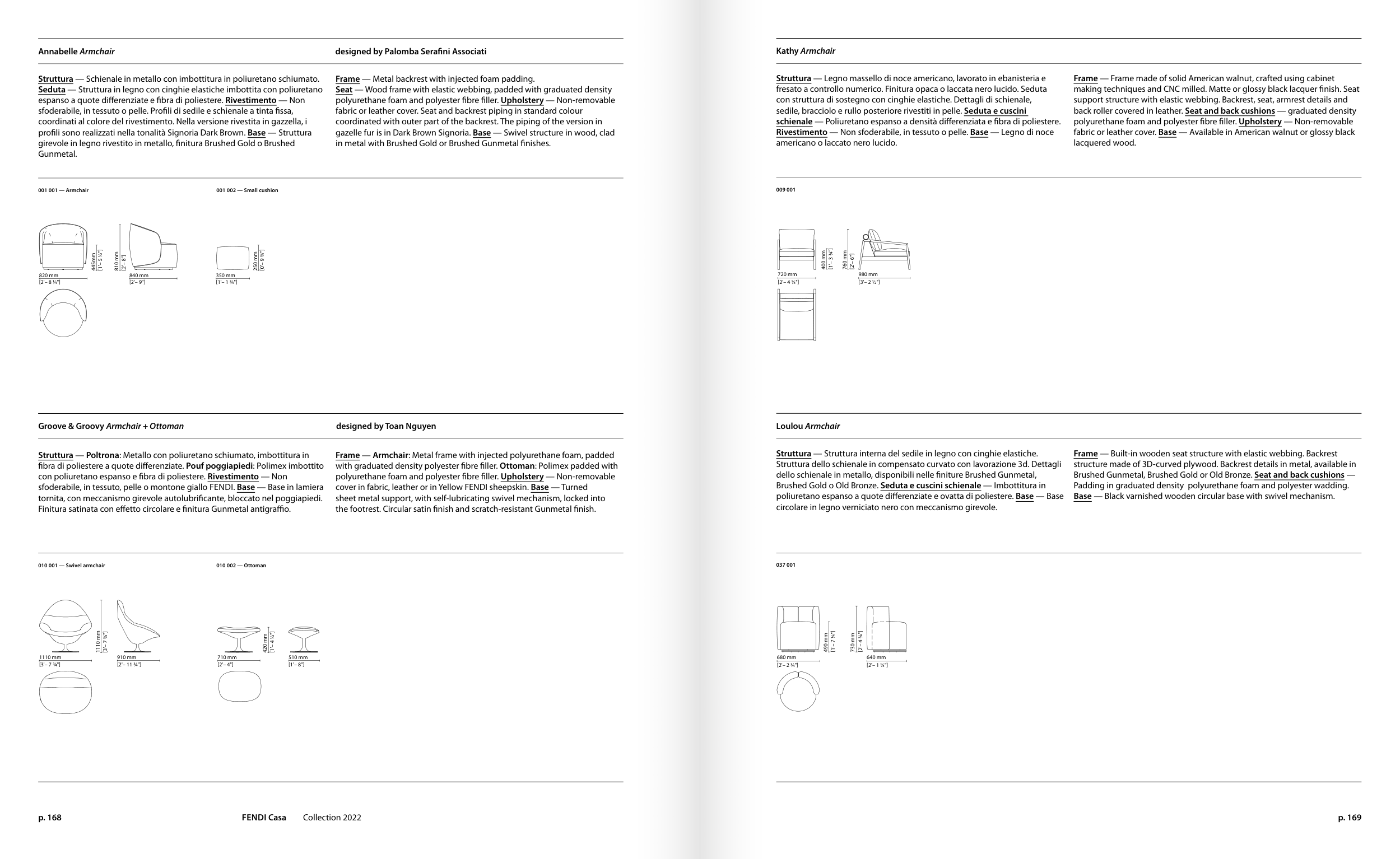 cover in fabric, leather or in Yellow FENDI sheepskin. Base — Turned