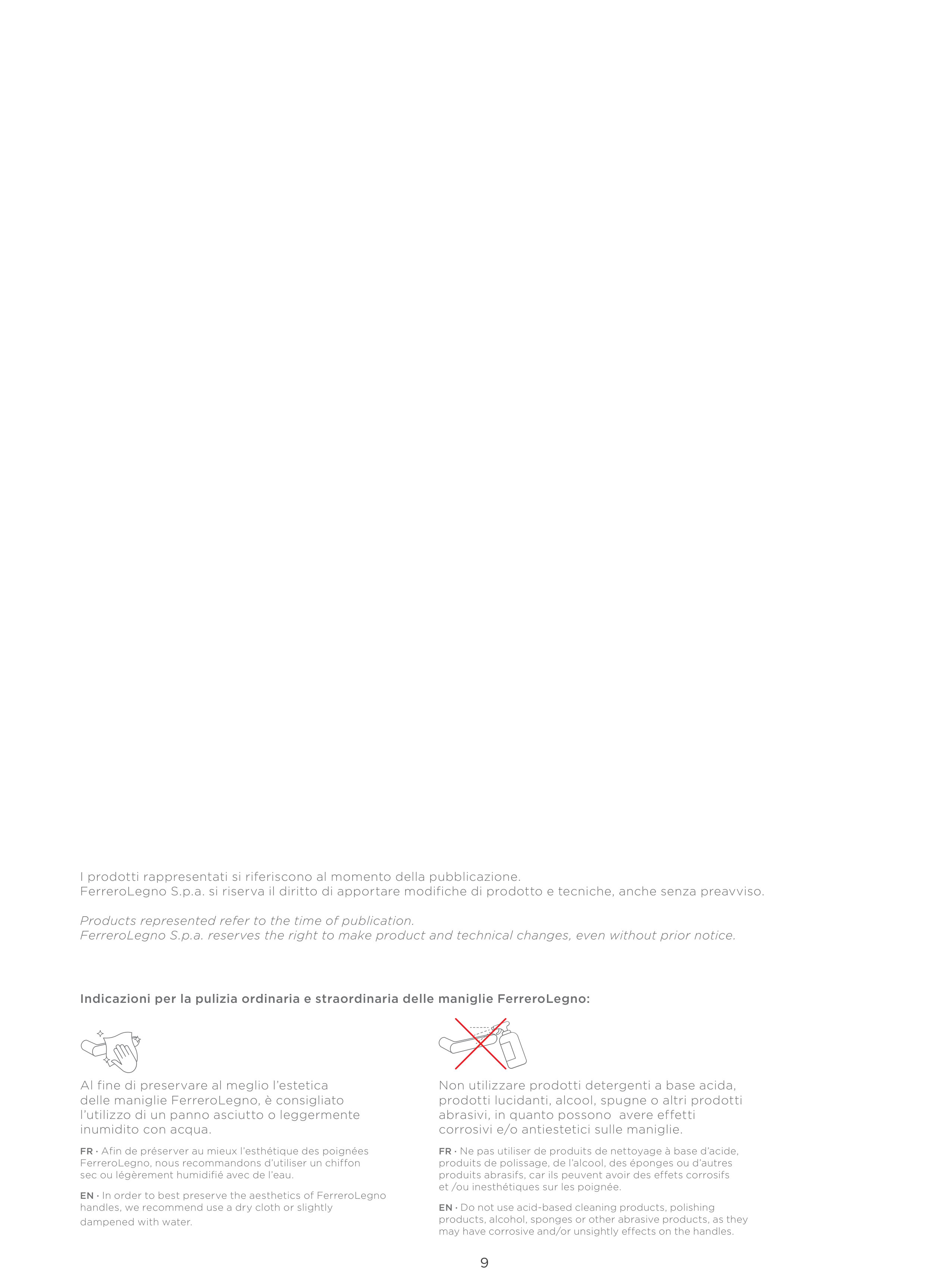 Indicazioni per la pulizia ordinaria e straordinaria delle maniglie FerreroLegno: