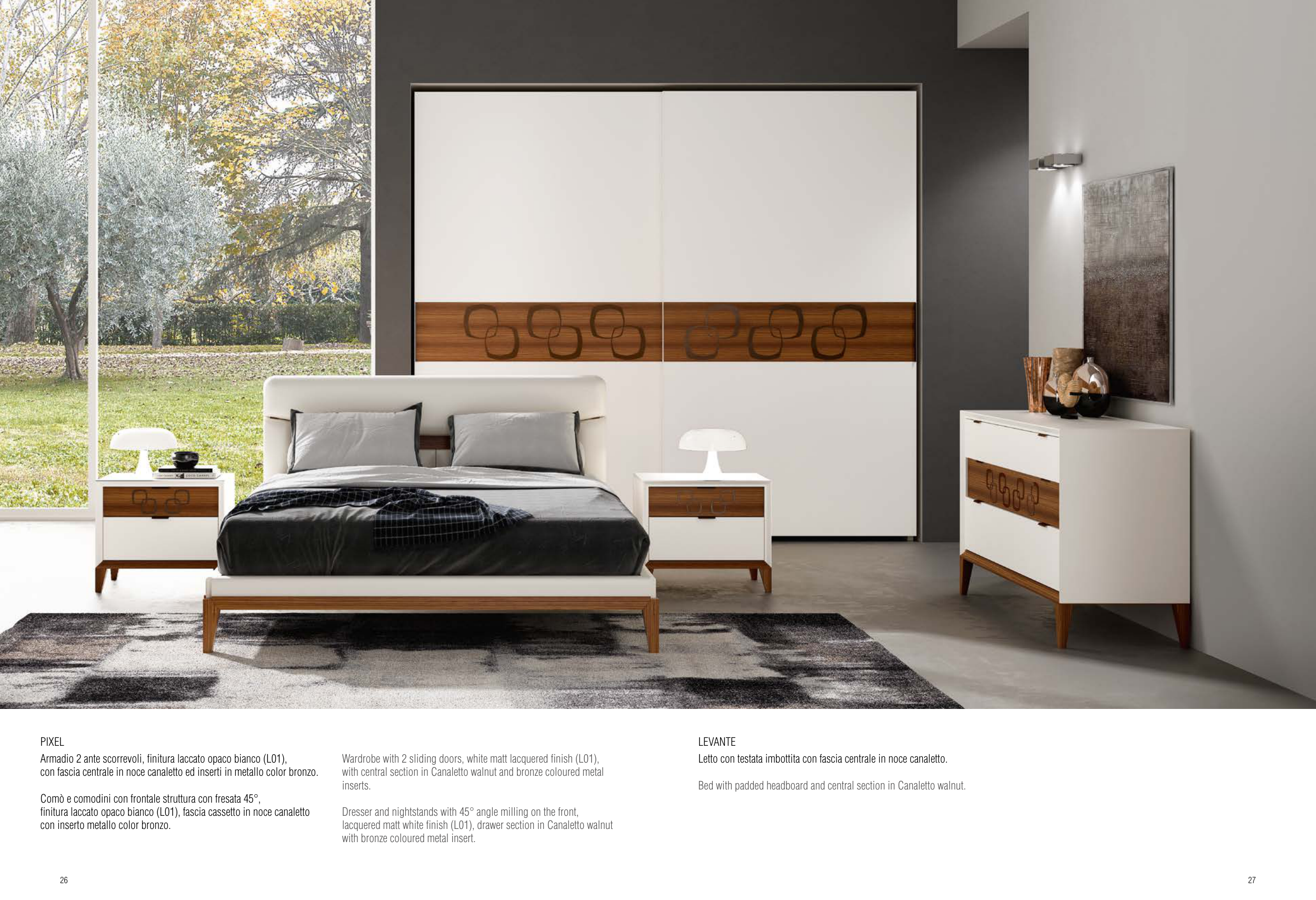 finitura laccato opaco bianco (L01), fascia cassetto in noce canaletto