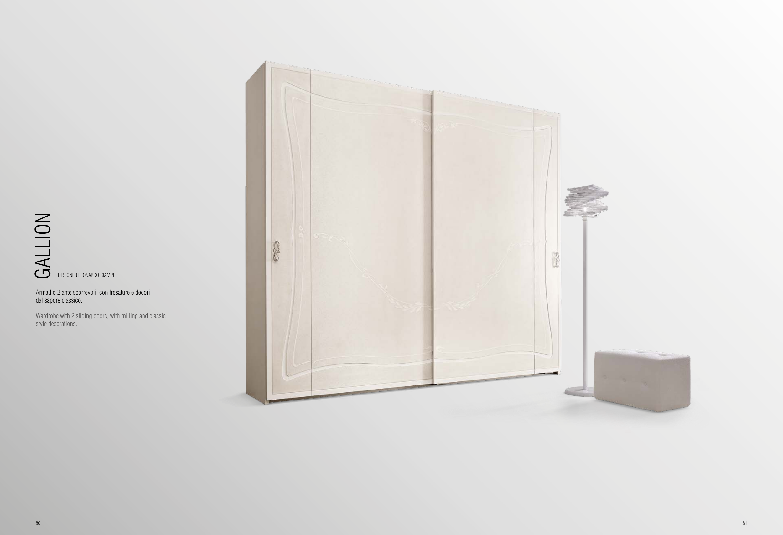 Armadio 2 ante scorrevoli, con fresature e decori