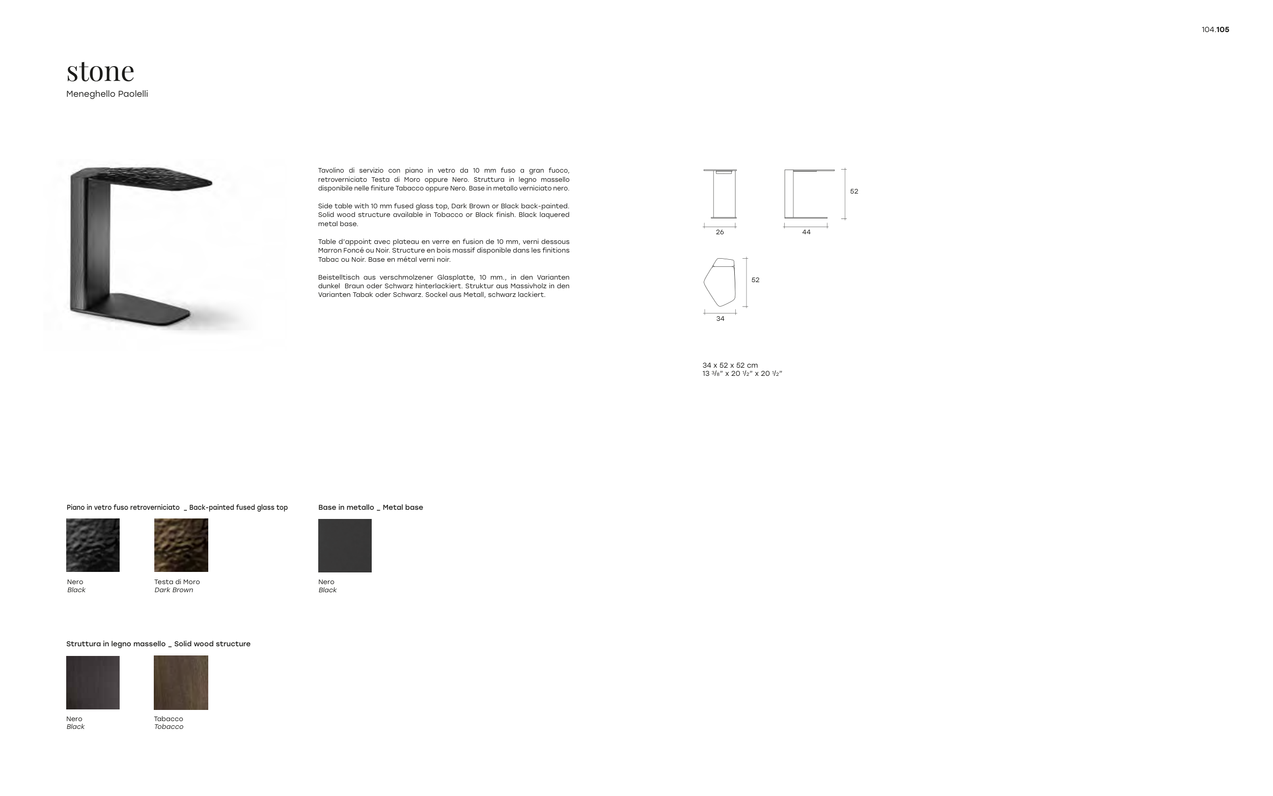 disponibile nelle finiture Tabacco oppure Nero. Base in metallo verniciato nero.