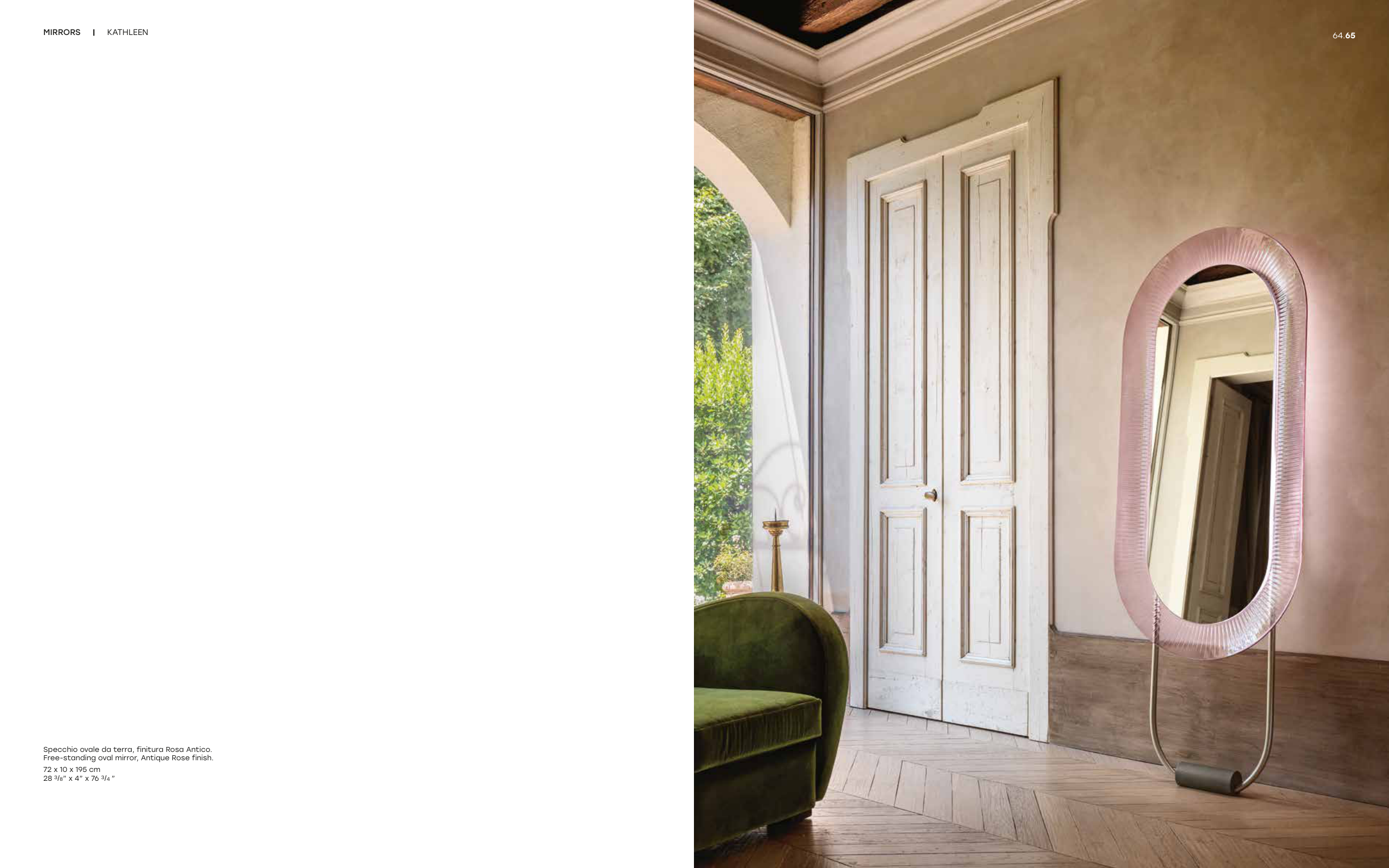 Specchio ovale da terra, finitura Rosa Antico.
