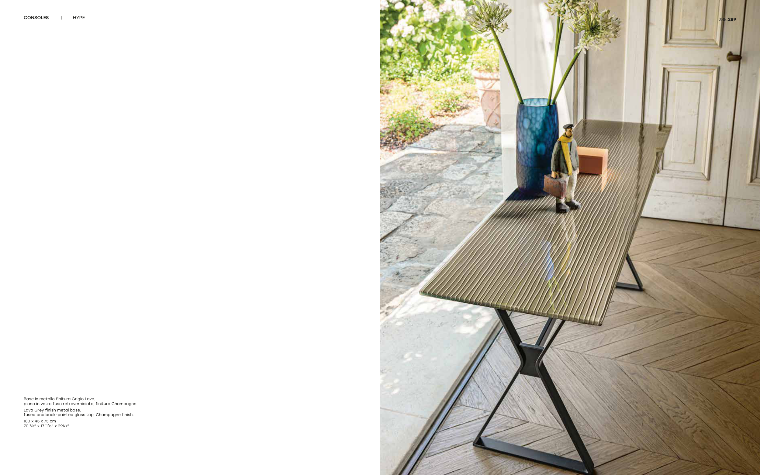 piano in vetro fuso retroverniciato, finitura Champagne.