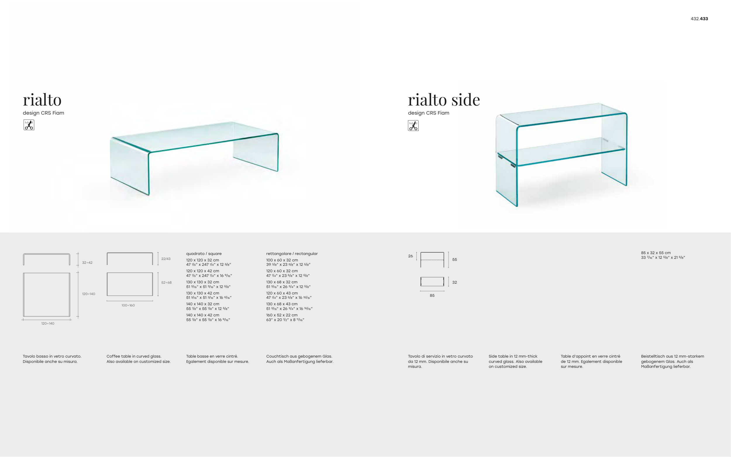 curved glass. Also available