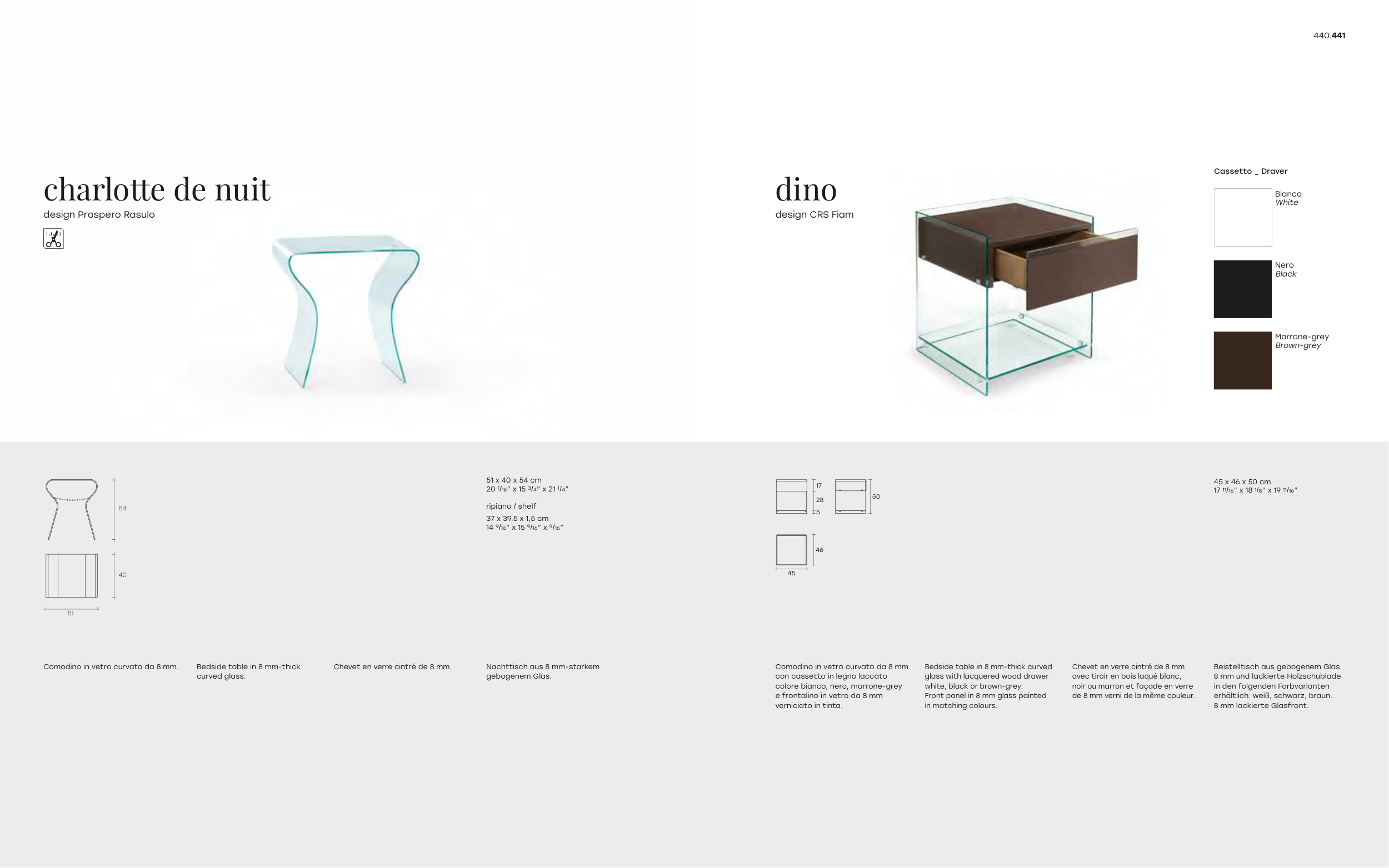 Bedside table in 8 mm-thick