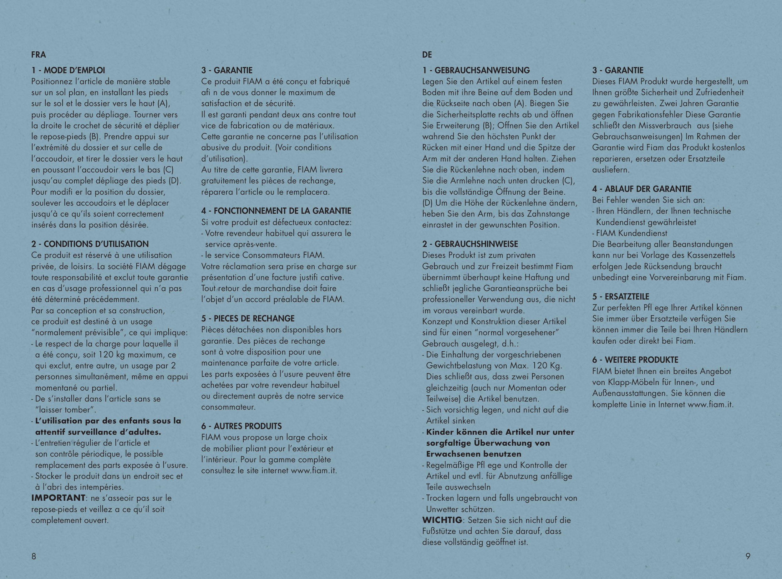 Garantie wird Fiam das Produkt kostenlos