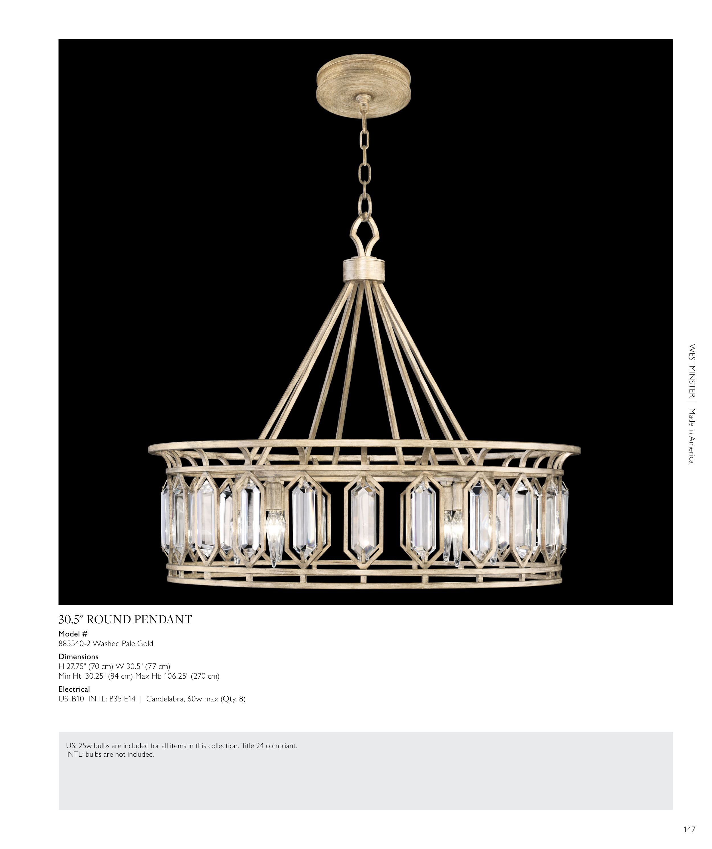 US: 25w bulbs are included for all items in this collection. Title 24 compliant.