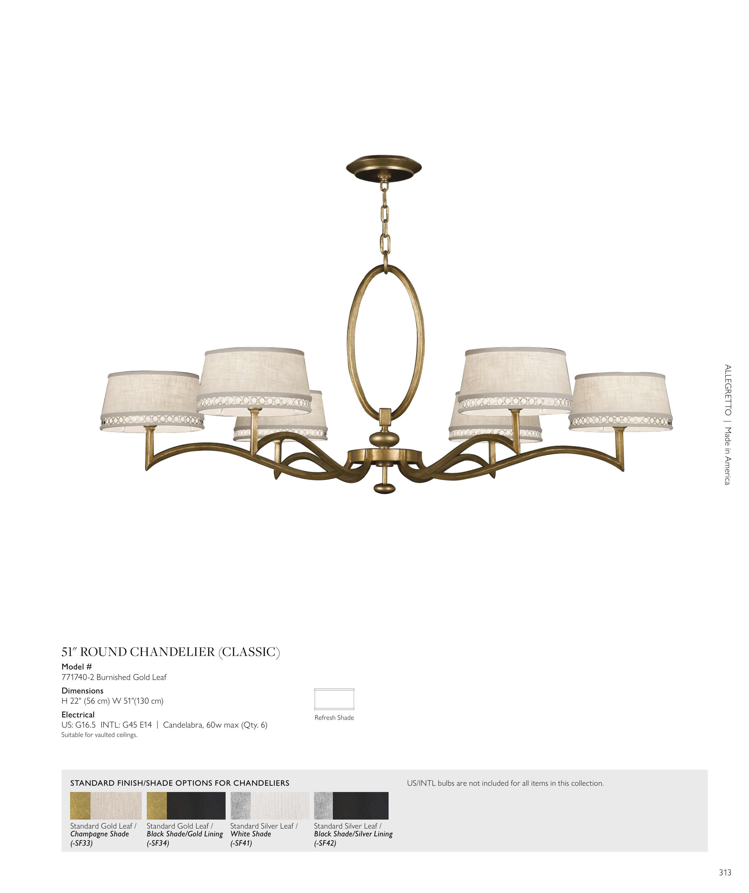 STANDARD FINISH/SHADE OPTIONS FOR CHANDELIERS