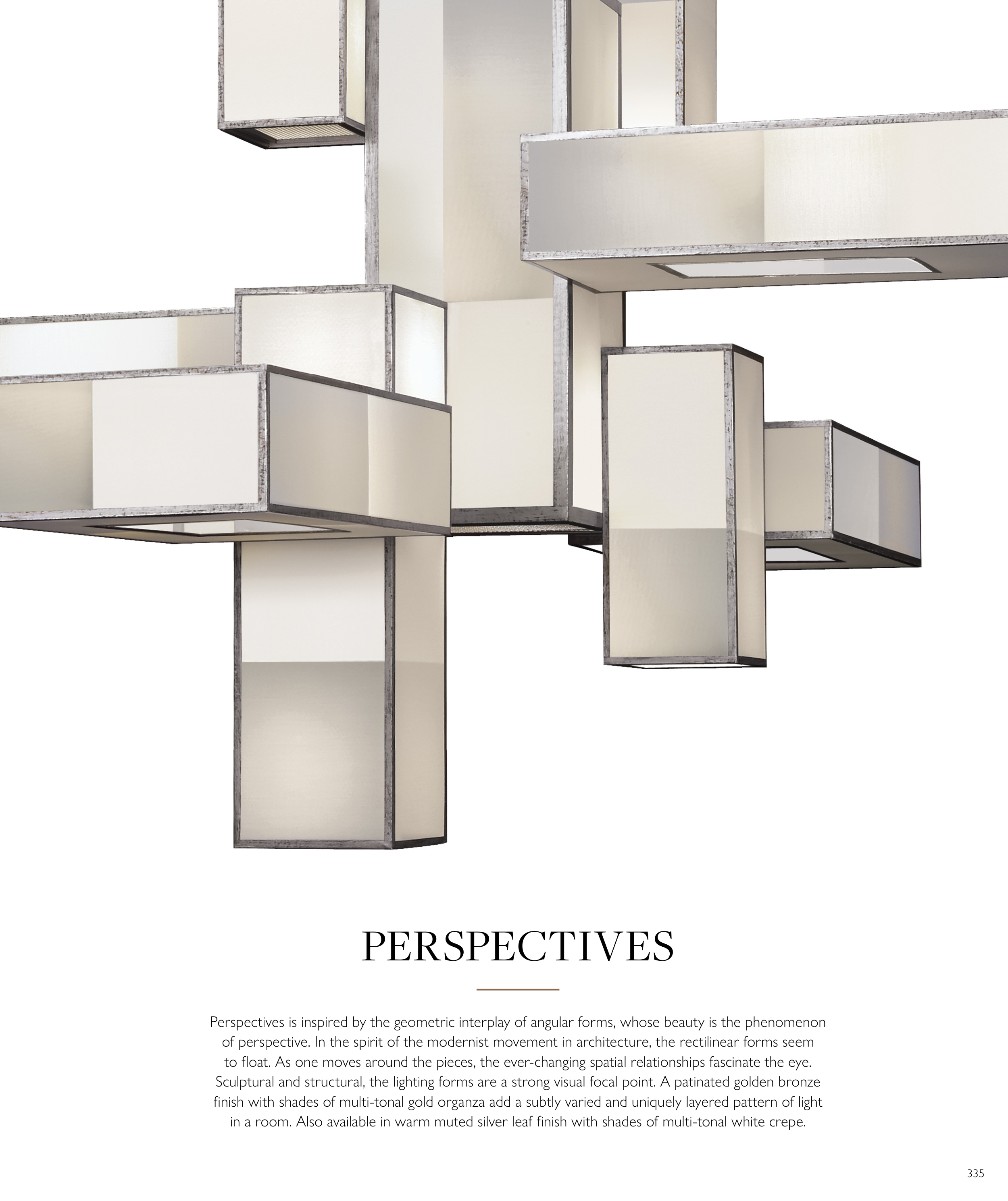 in a room. Also available in warm muted silver leaf fi nish with shades of multi-tonal white crepe.