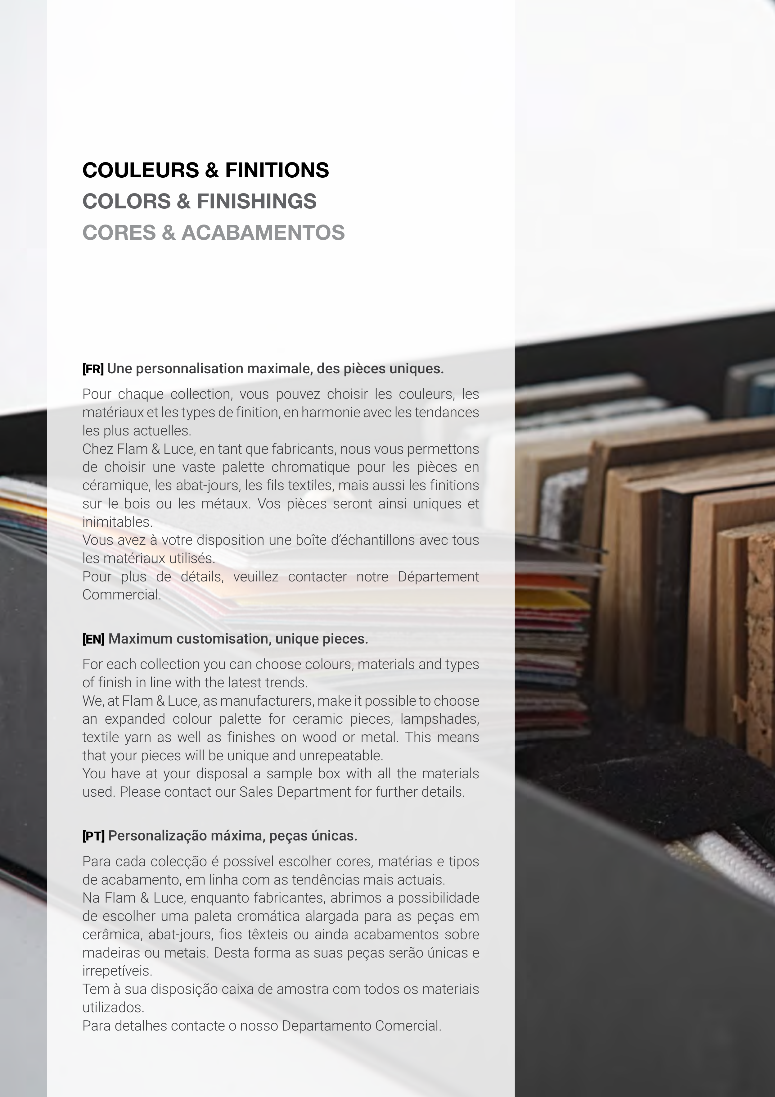 We, at Flam & Luce, as manufacturers, make it possible to choose