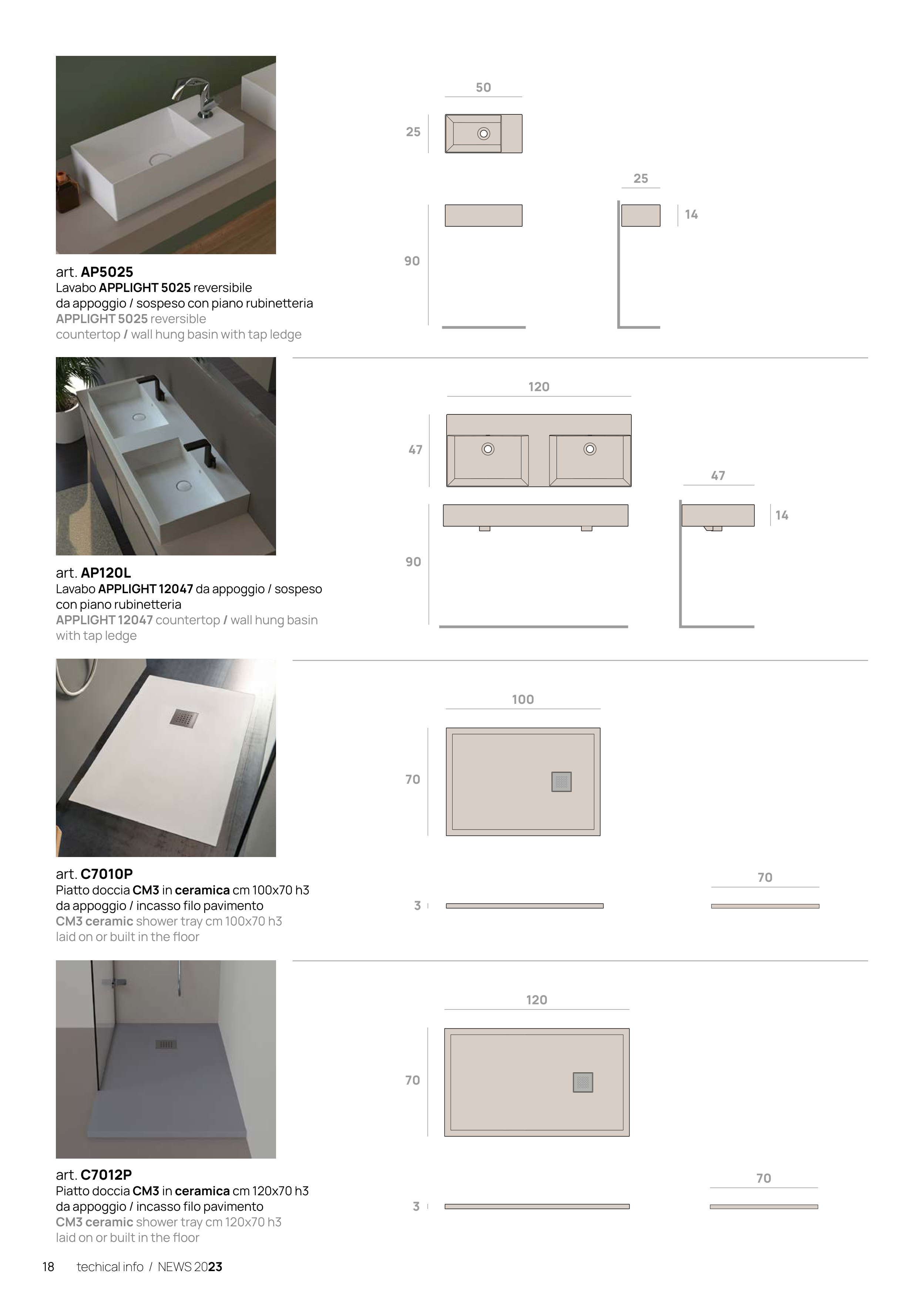 CM3 ceramic shower tray cm 120x70 h3