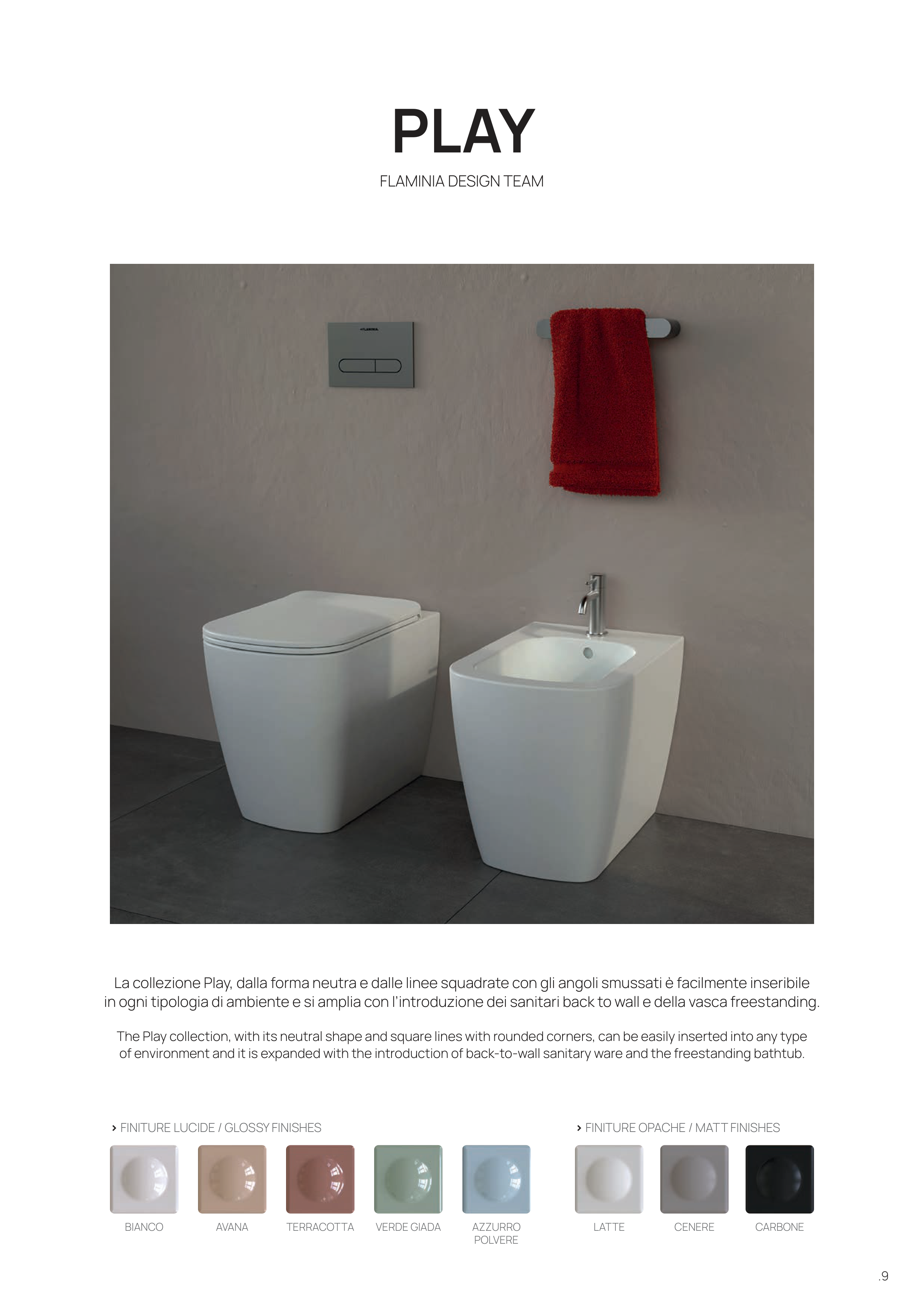 The Play collection, with its neutral shape and square lines with rounded corners, can be easily inserted into any type