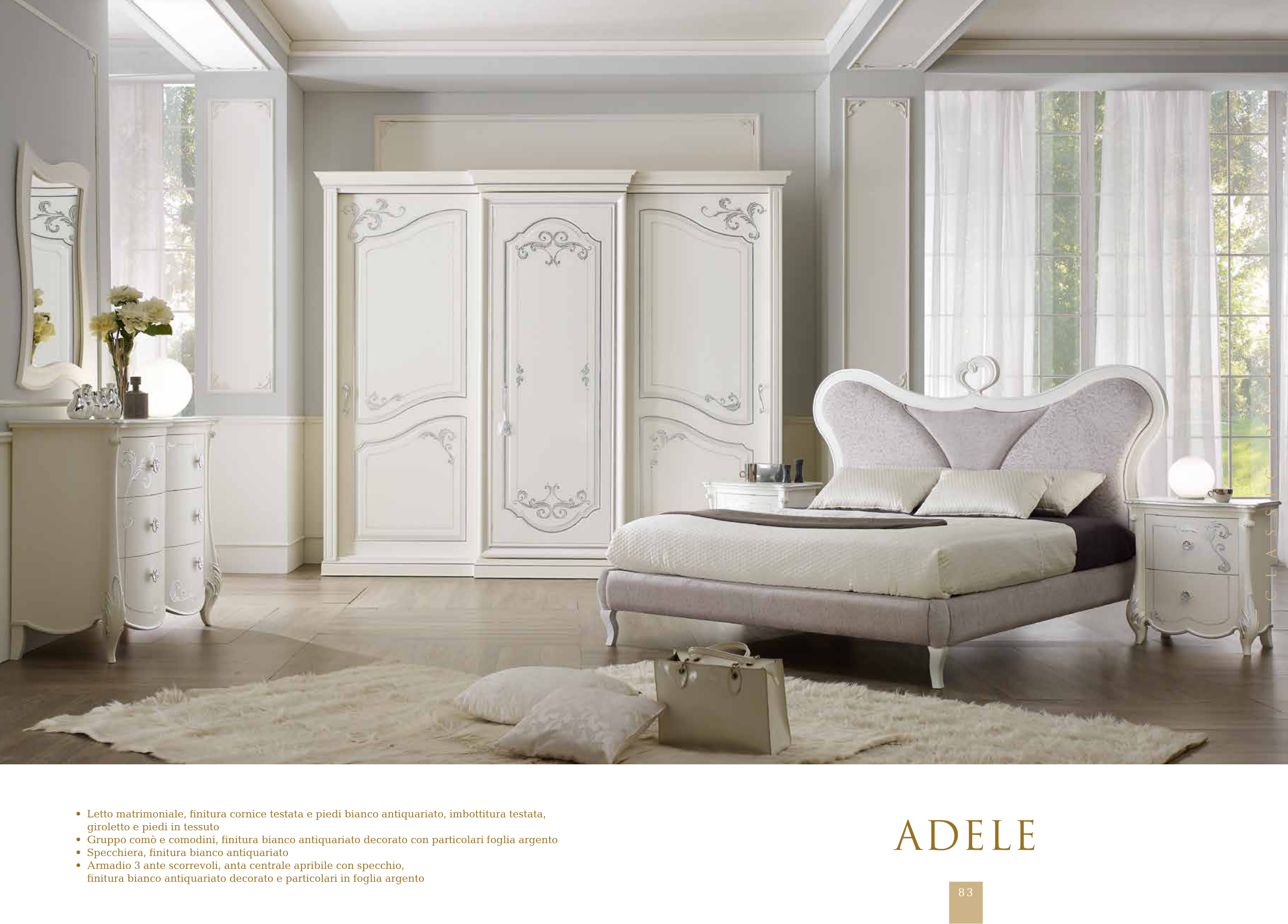 finitura bianco antiquariato decorato e particolari in foglia argento