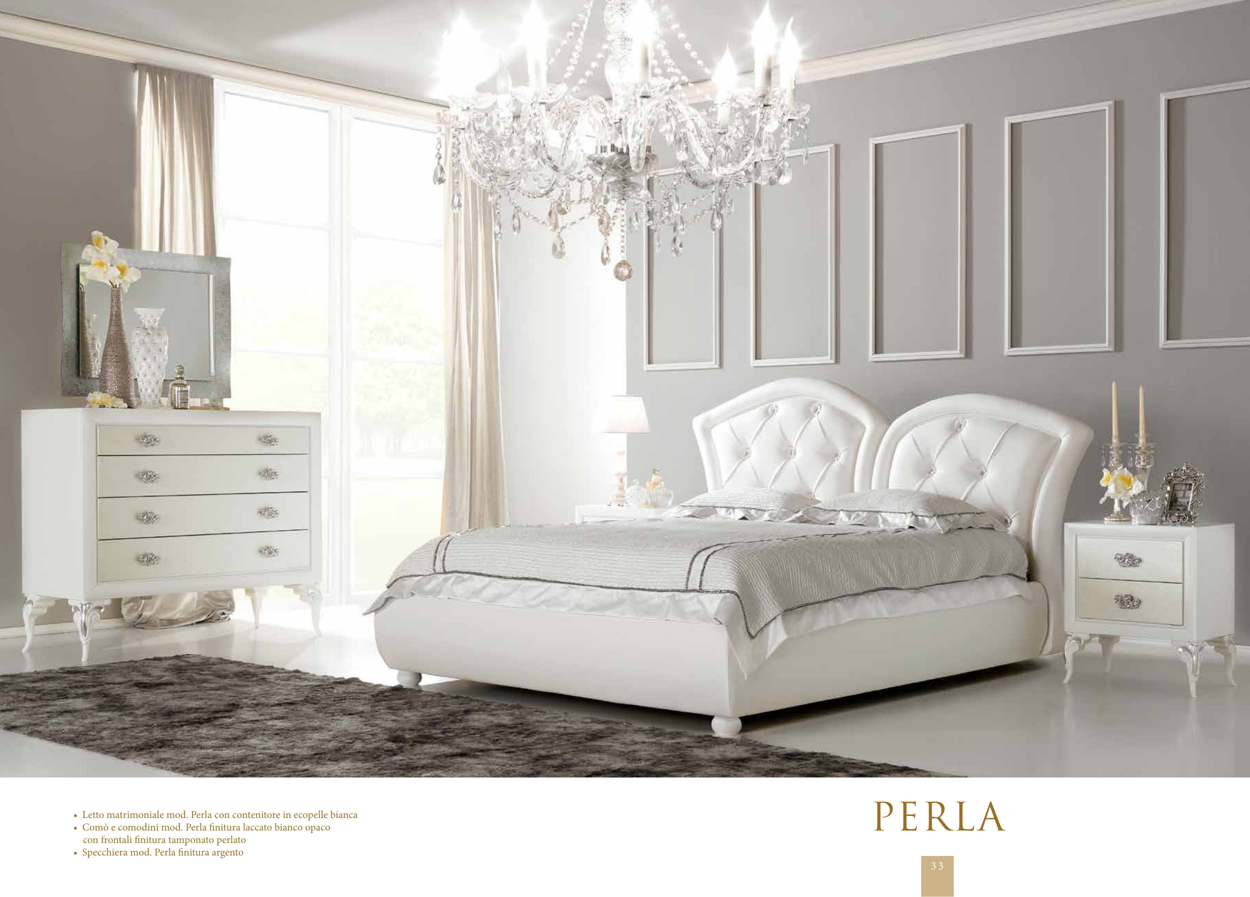 • Letto matrimoniale mod. Perla con contenitore in ecopelle bianca