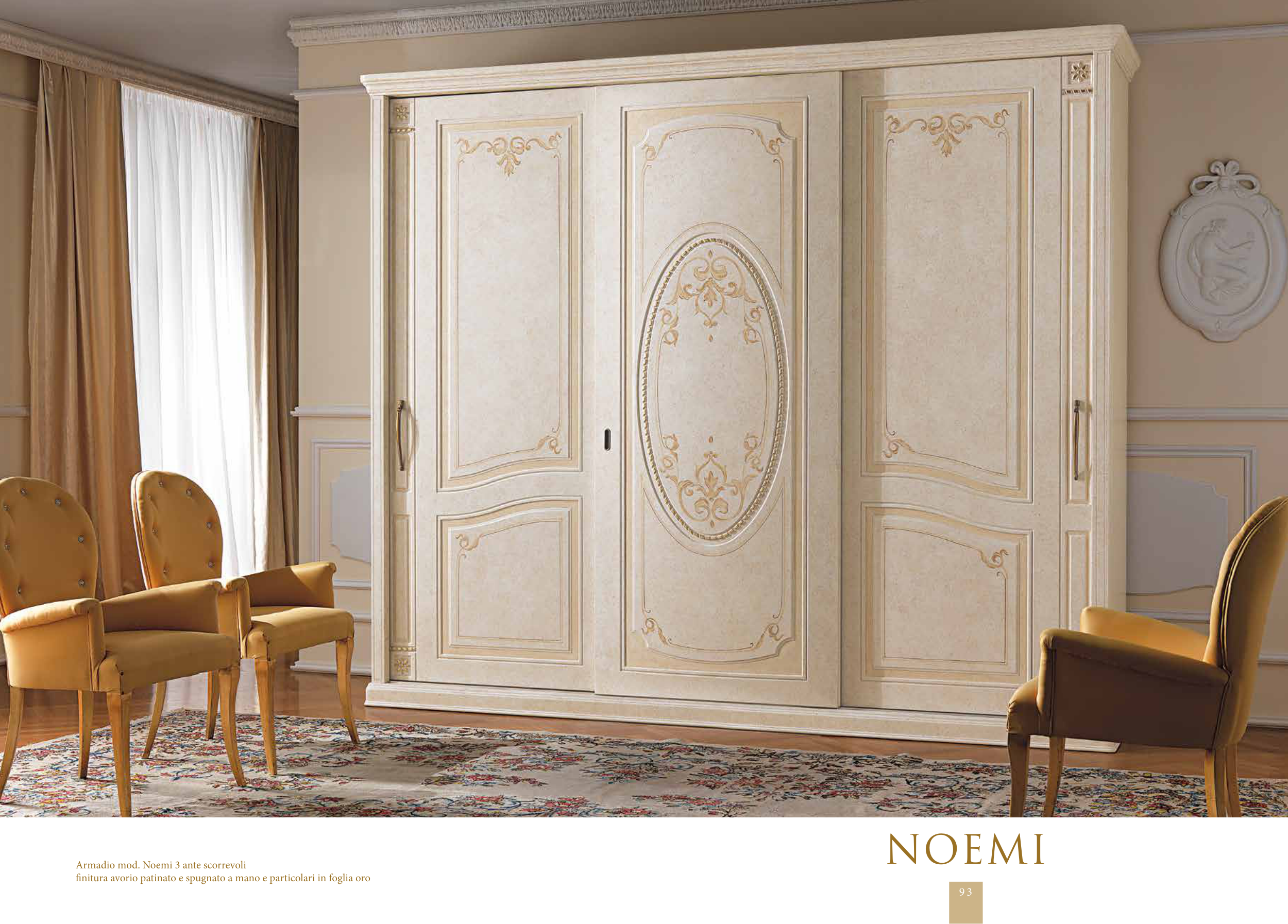 finitura avorio patinato e spugnato a mano e particolari in foglia oro