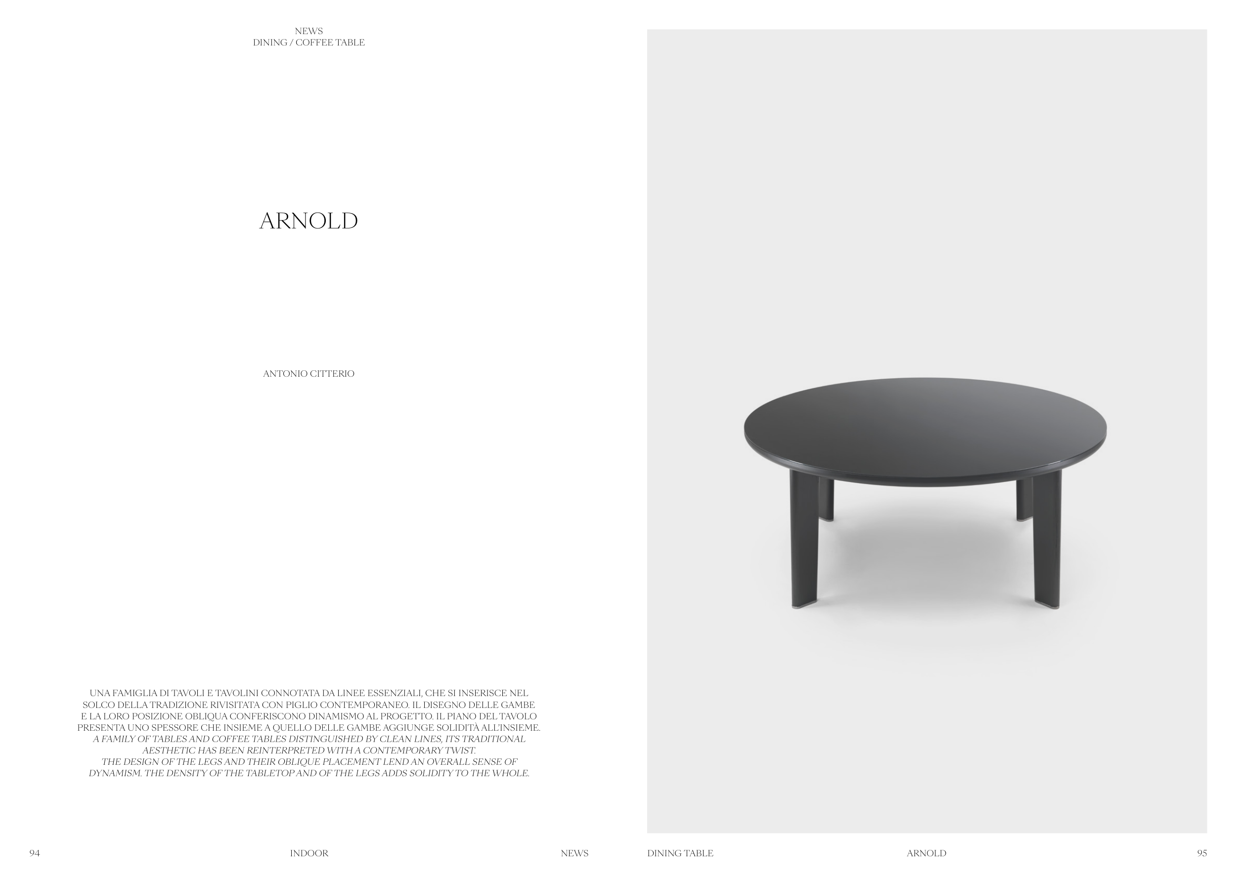 DYNAMISM. THE DENSITY OF THE TABLETOP AND OF THE LEGS ADDS SOLIDITY TO THE WHOLE.