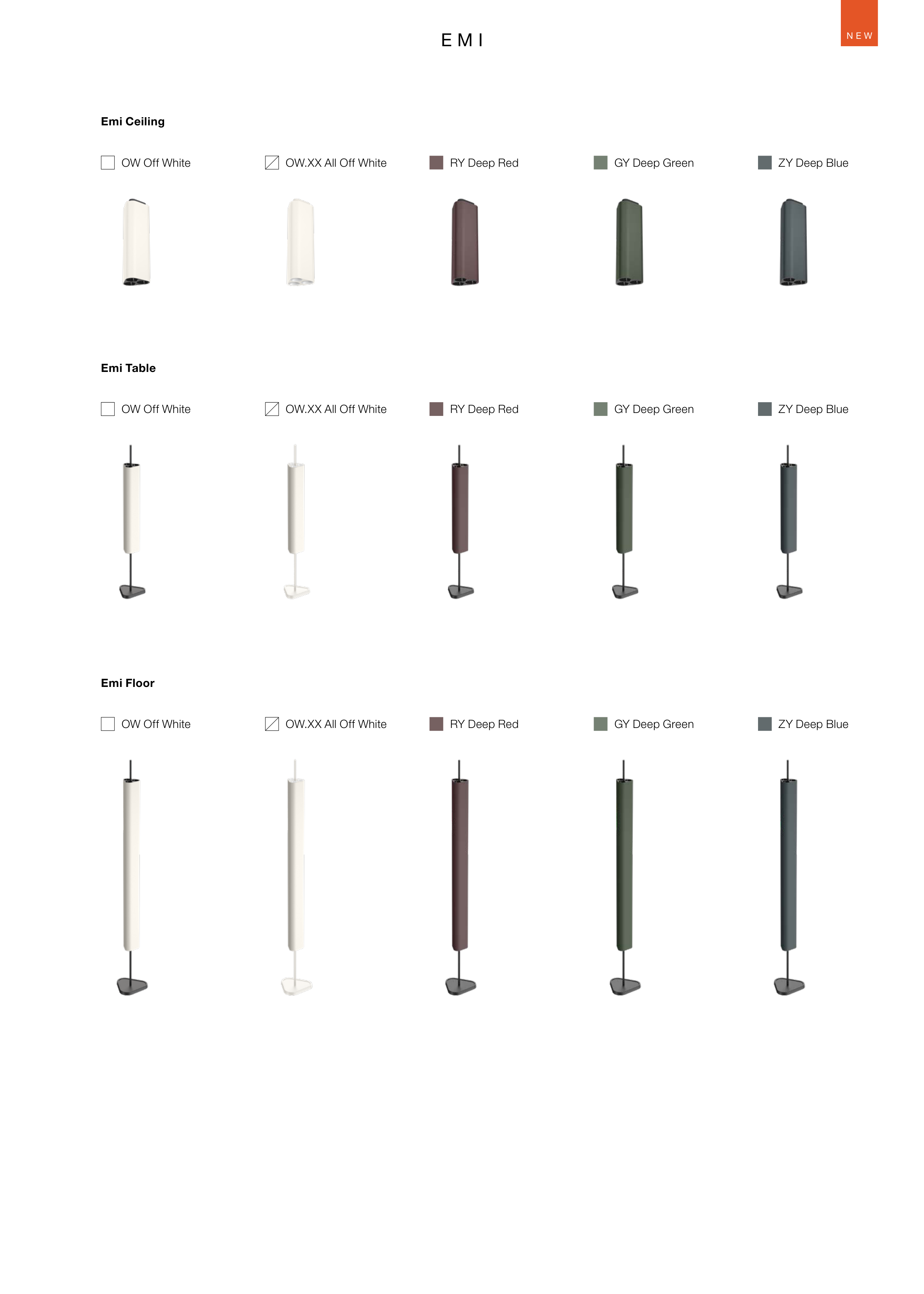 E M I N E W Emi Ceiling Emi Table Emi Floor OW.XX All Off White OW.XX All Off White OW.XX All Off White RY Deep Red RY Deep Red RY Deep Red GY Deep Green GY Deep Green GY Deep Green ZY Deep Blue ZY Deep Blue ZY Deep Blue OW Off White OW Off White OW Off White N E W