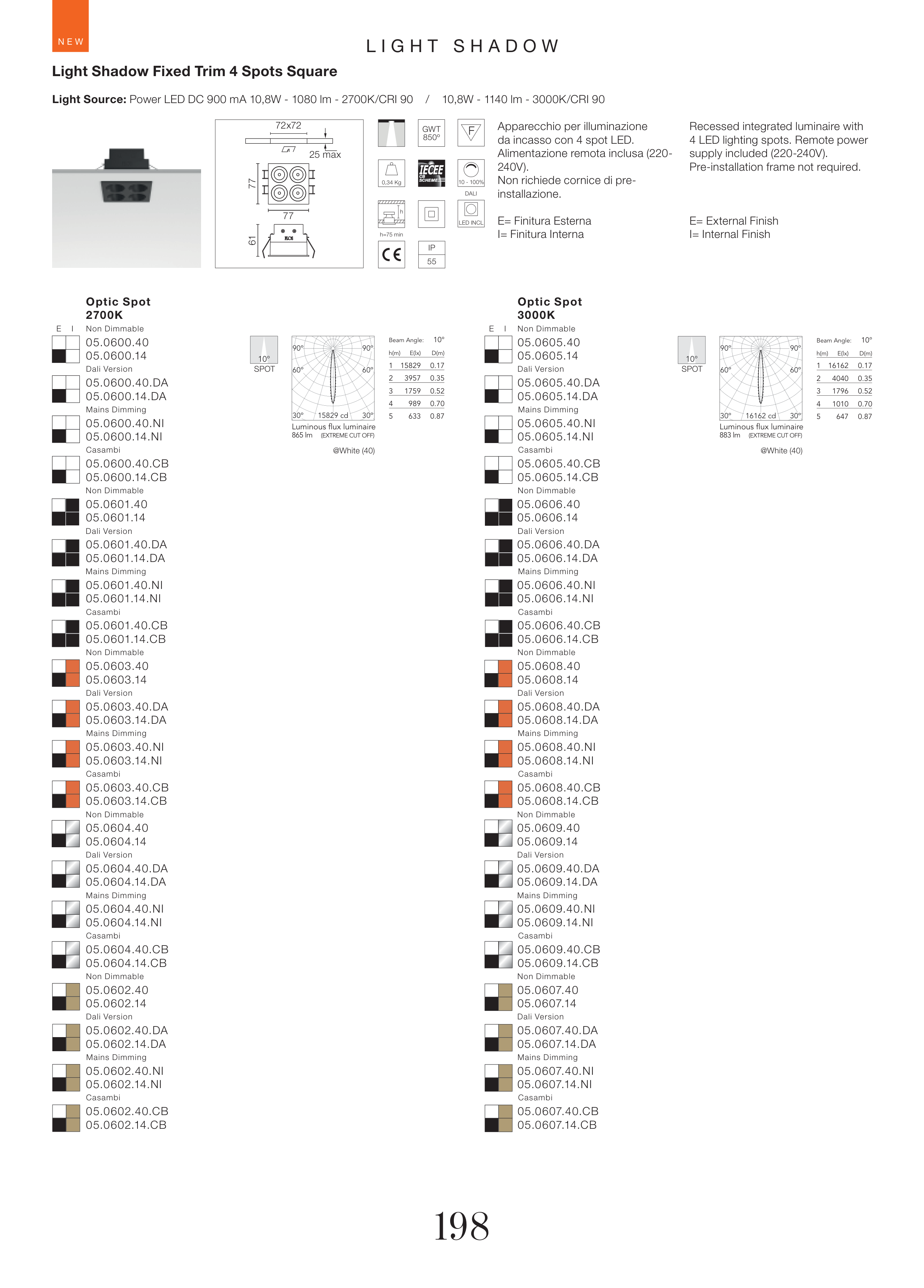 Light Source: Power LED DC 900 mA 10,8W - 1080 lm - 2700K/CRI 90 / 10,8W - 1140 lm - 3000K/CRI 90
