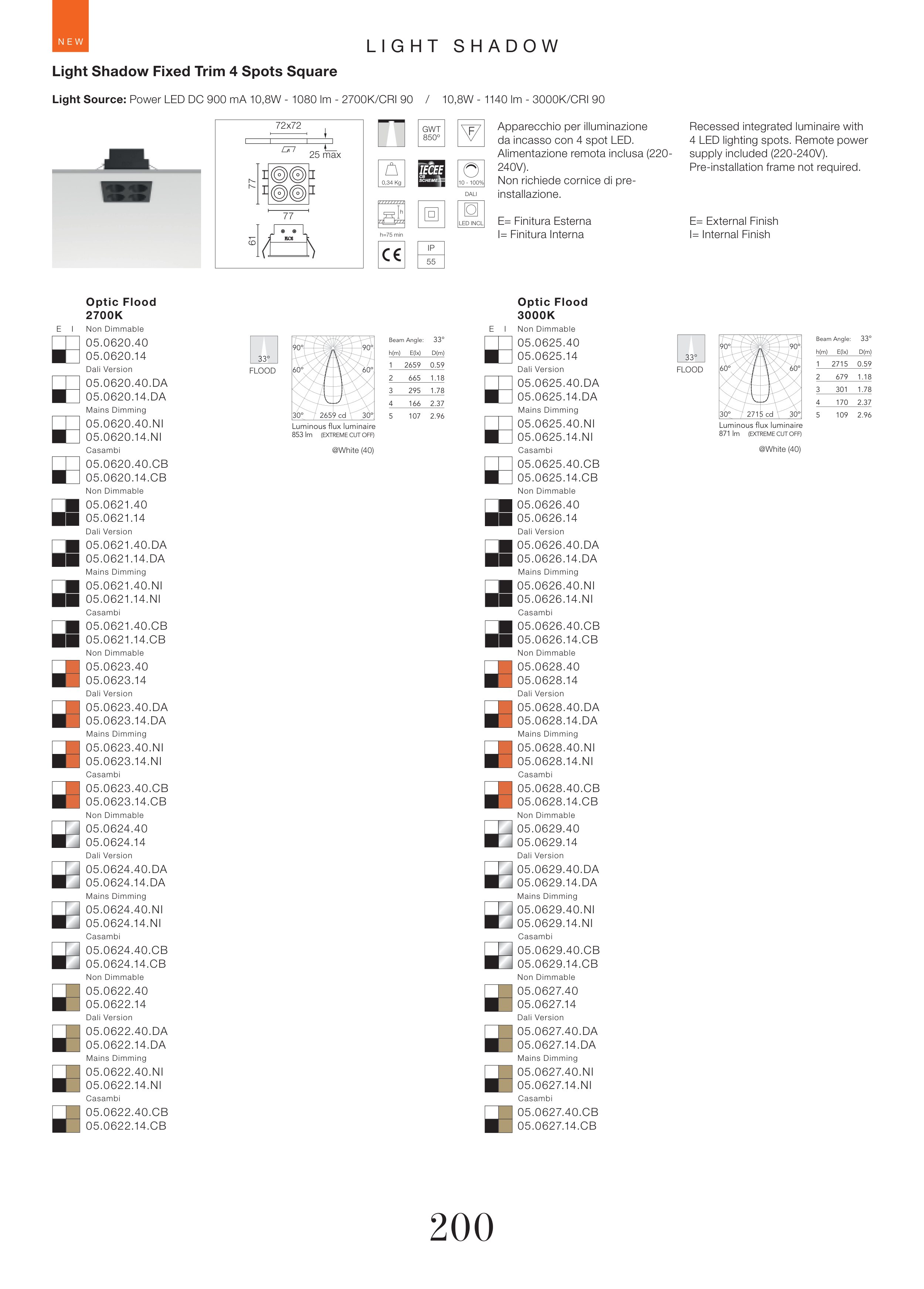Light Source: Power LED DC 900 mA 10,8W - 1080 lm - 2700K/CRI 90 / 10,8W - 1140 lm - 3000K/CRI 90