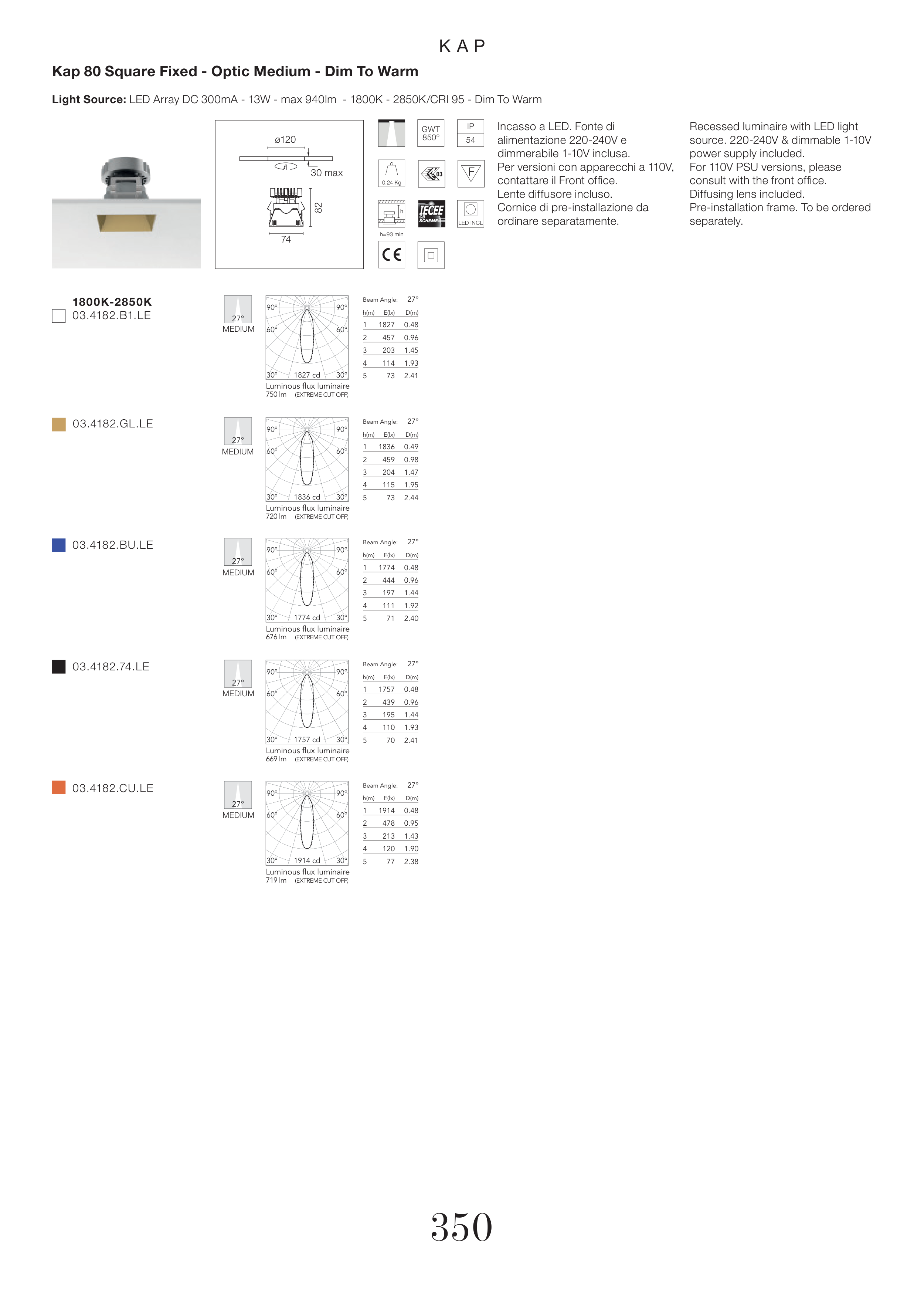 Kap 80 Square Fixed - Optic Medium - Dim To Warm