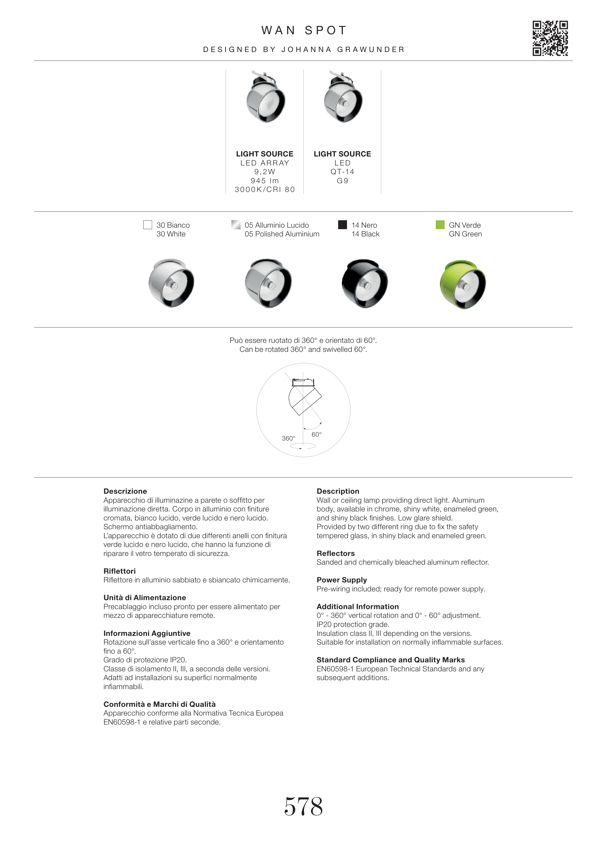 Può essere ruotato di 360° e orientato di 60°.