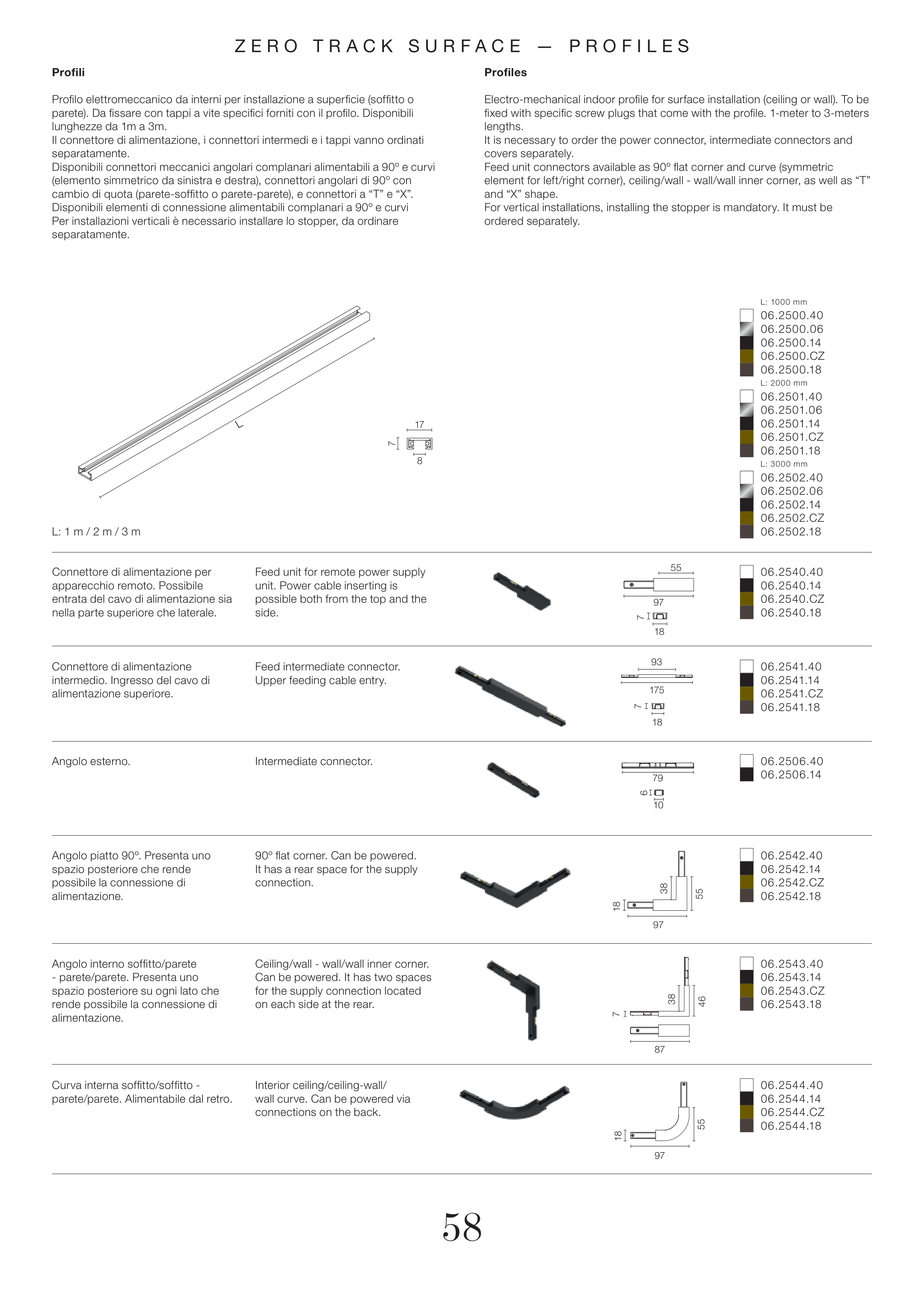 cambio di quota (parete-soffitto o parete-parete), e connettori a “T” e “X”.