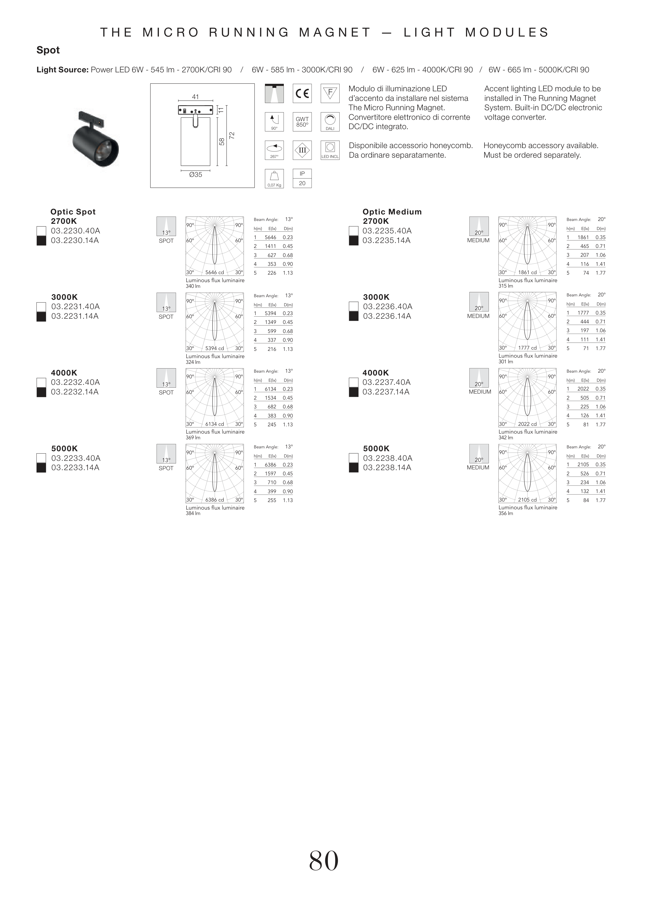 Light Source: Power LED 6W - 545 lm - 2700K/CRI 90 / 6W - 585 lm - 3000K/CRI 90 / 6W - 625 lm - 4000K/CRI 90 / 6W - 665 lm - 5000K/CRI 90