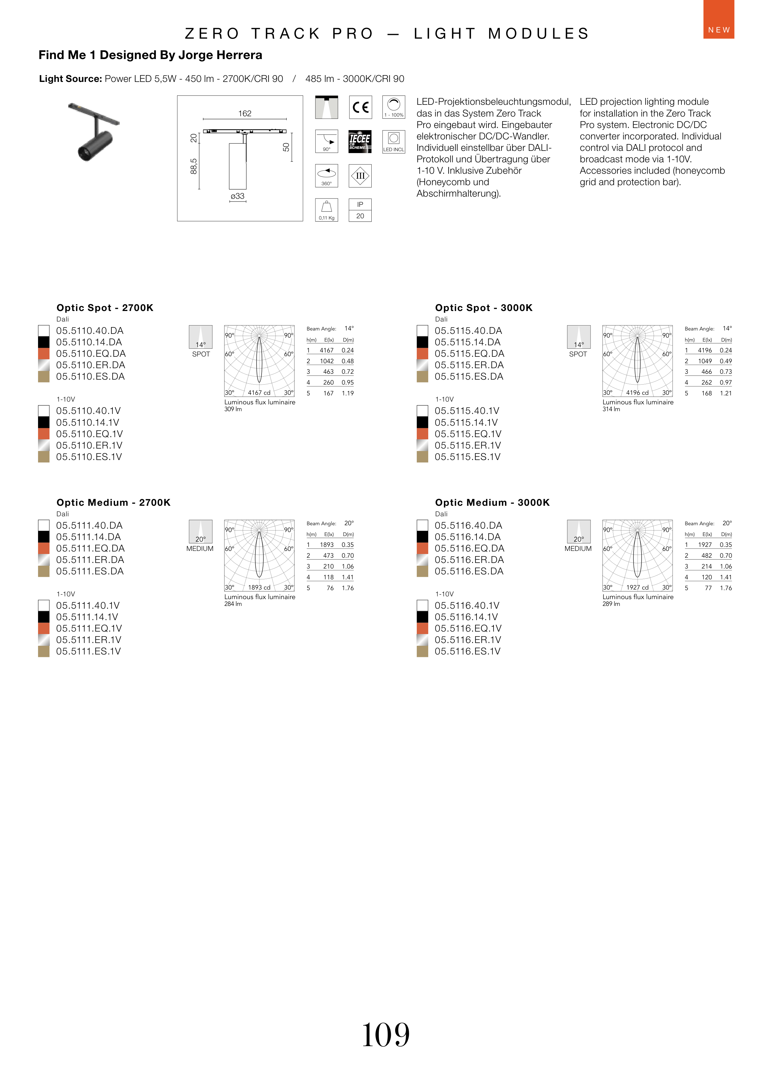 Light Source: Power LED 5,5W - 450 lm - 2700K/CRI 90 / 485 lm - 3000K/CRI 90