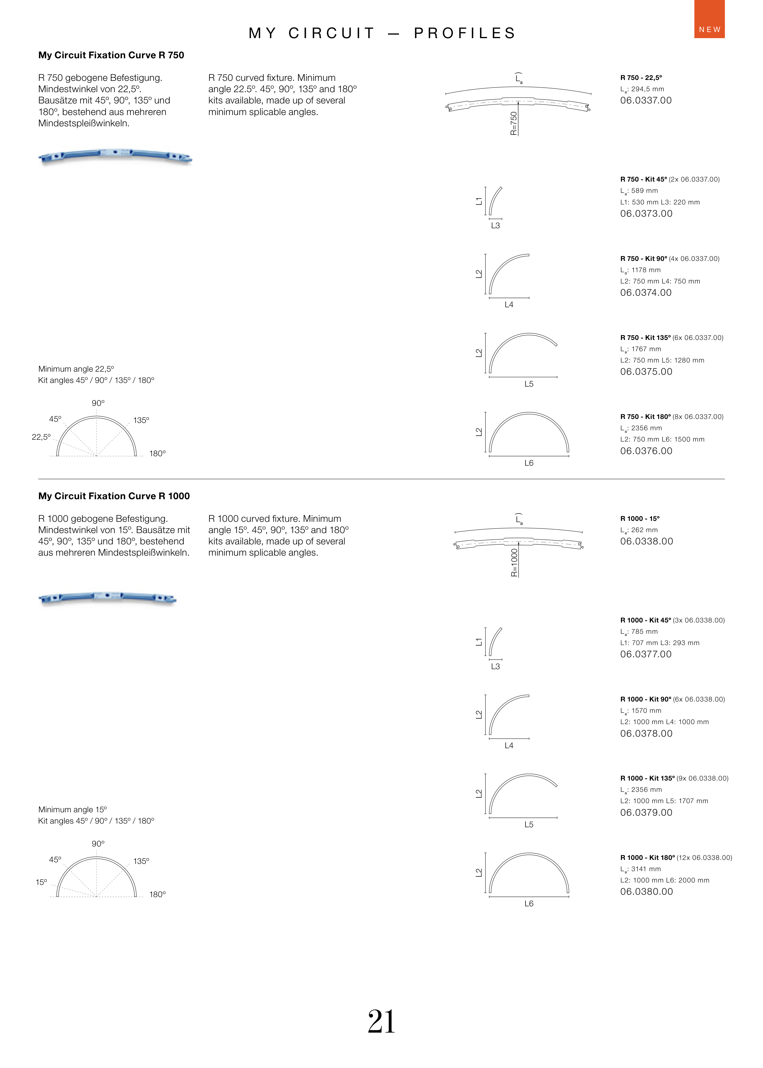 Mindestwinkel von 15º. Bausätze mit