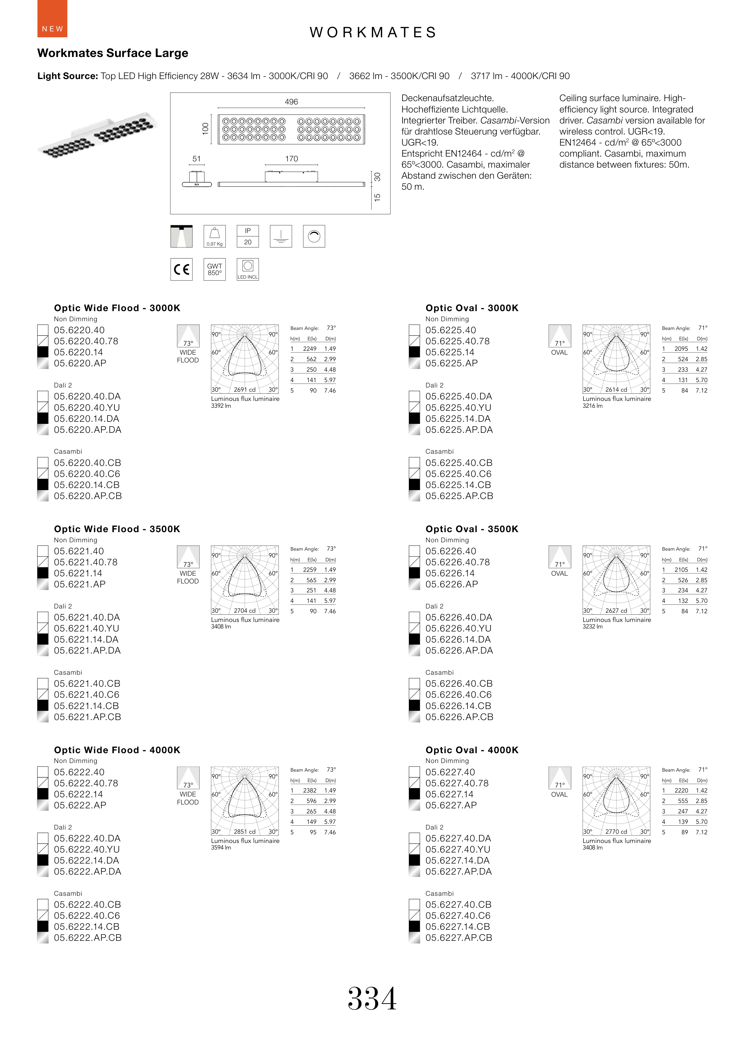Light Source: Top LED High Efficiency 28W - 3634 lm - 3000K/CRI 90 / 3662 lm - 3500K/CRI 90 / 3717 lm - 4000K/CRI 90