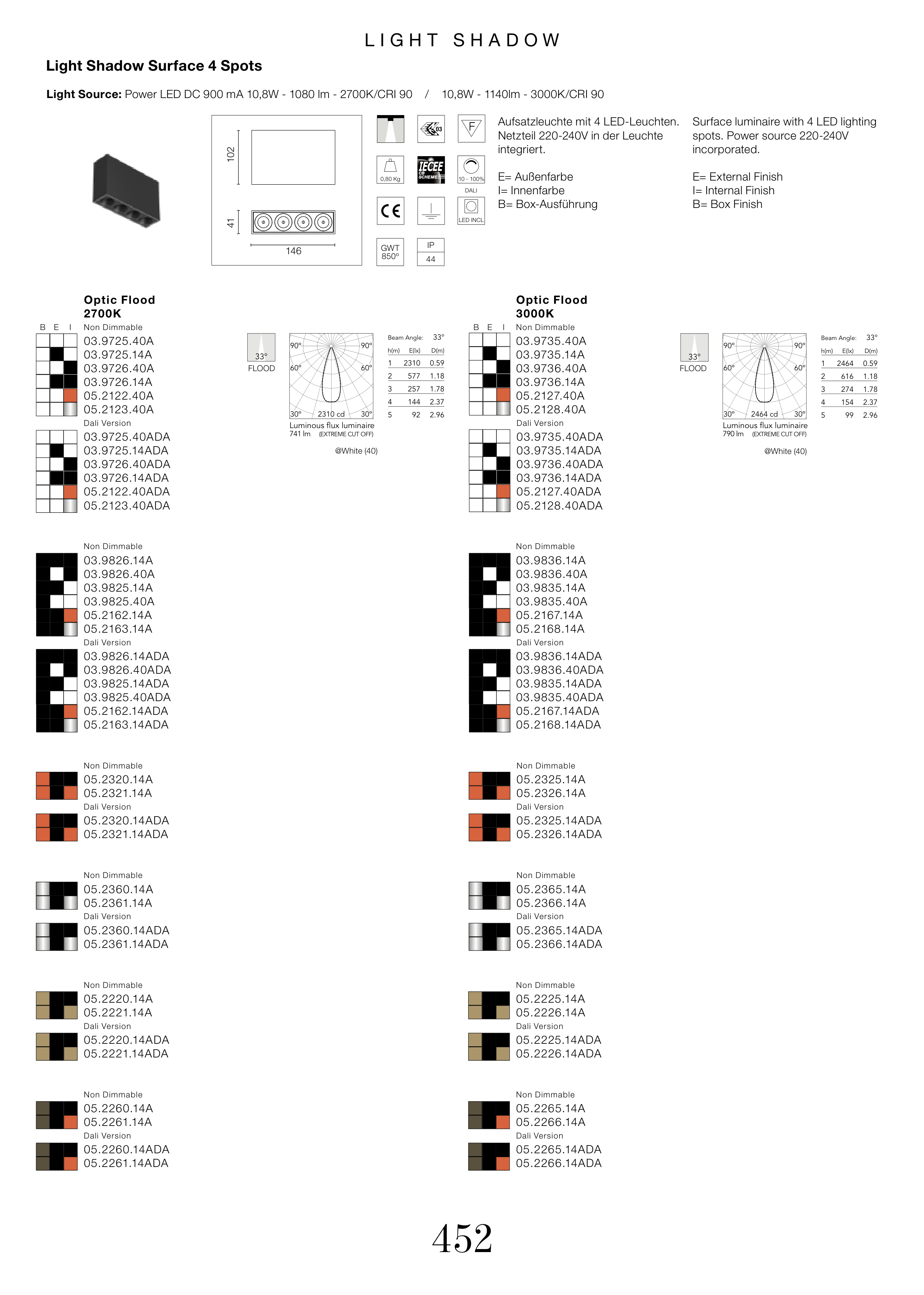 Light Source: Power LED DC 900 mA 10,8W - 1080 lm - 2700K/CRI 90 / 10,8W - 1140lm - 3000K/CRI 90
