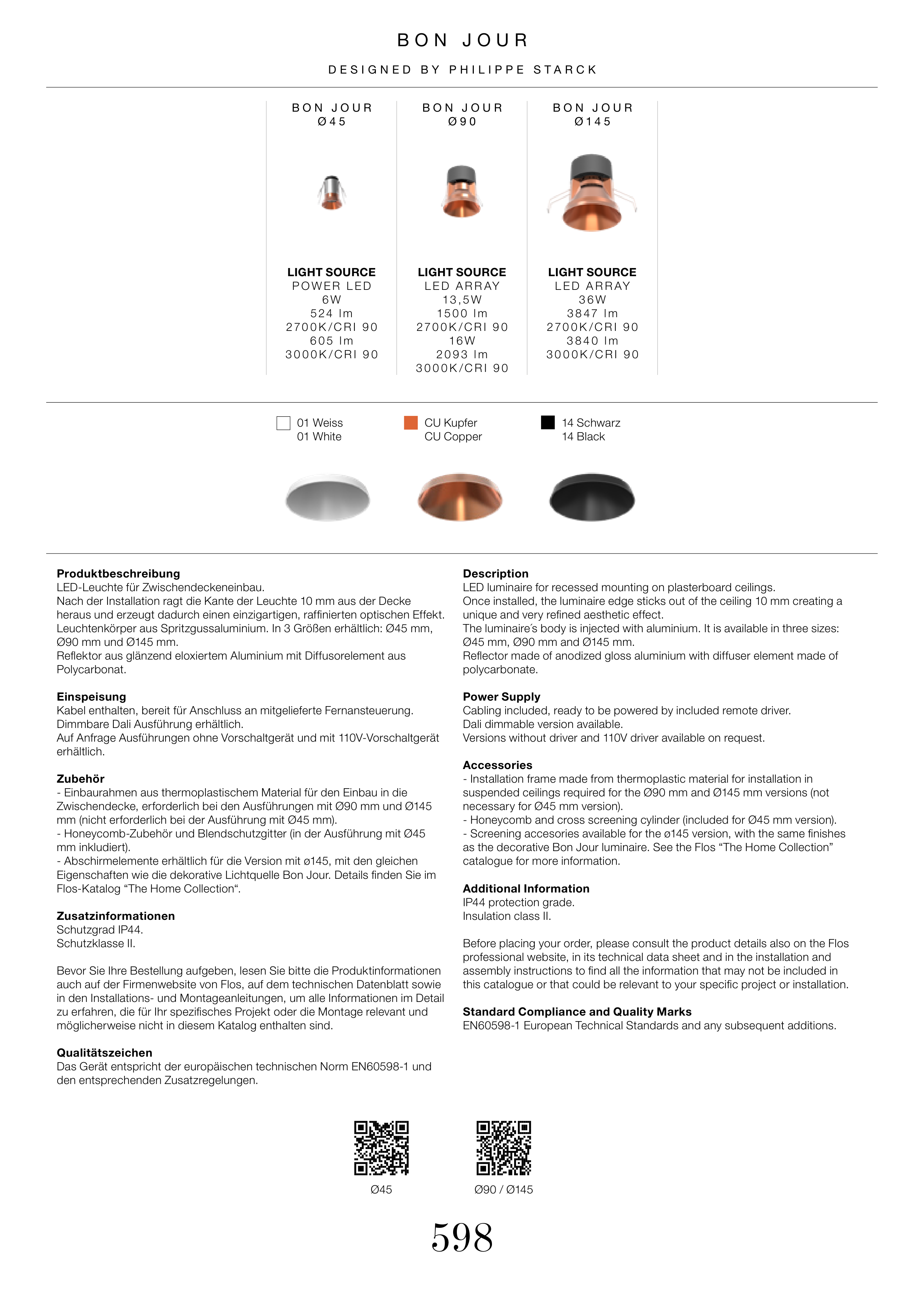 auch auf der Firmenwebsite von Flos, auf dem technischen Datenblatt sowie