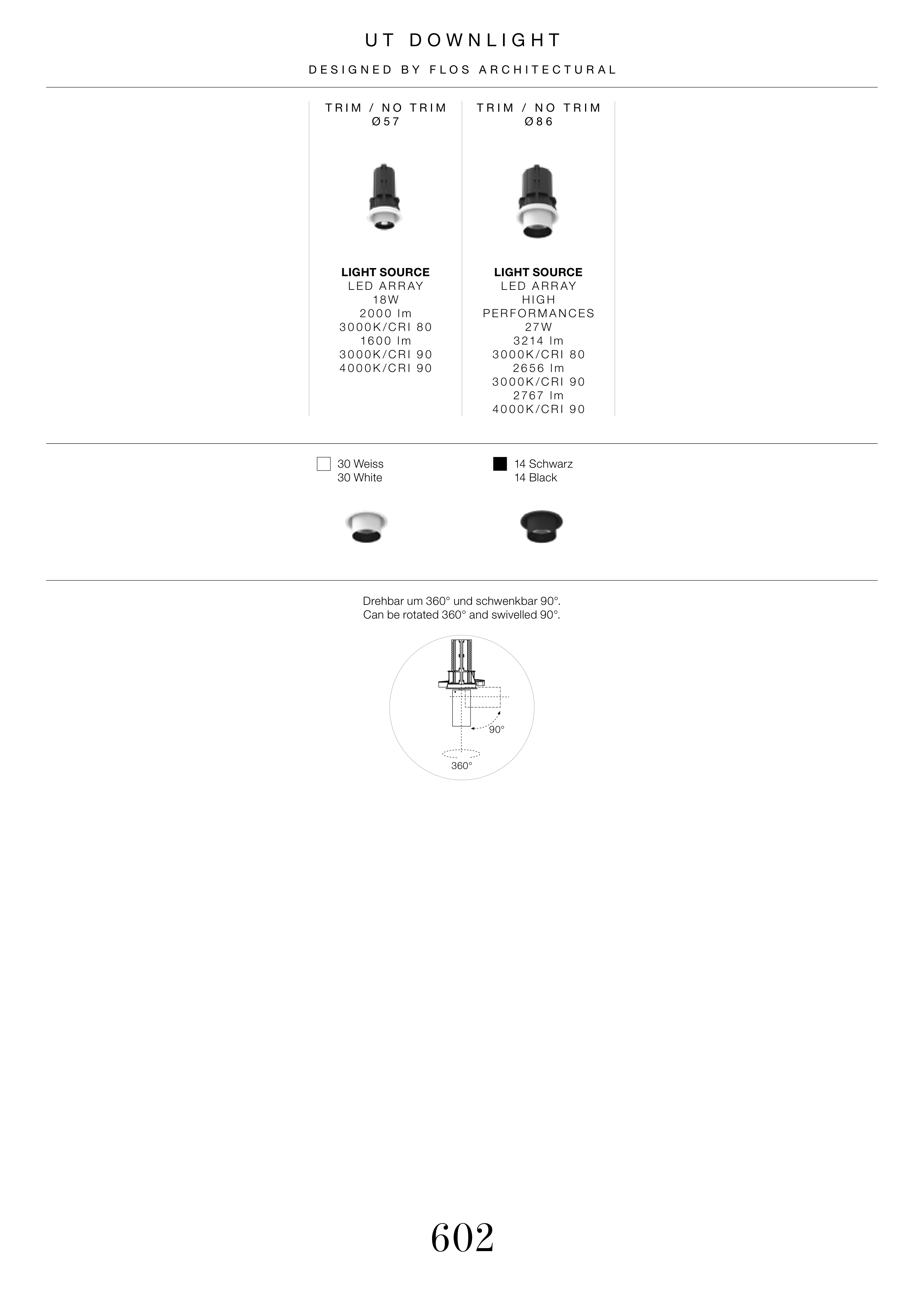 Drehbar um 360° und schwenkbar 90°.