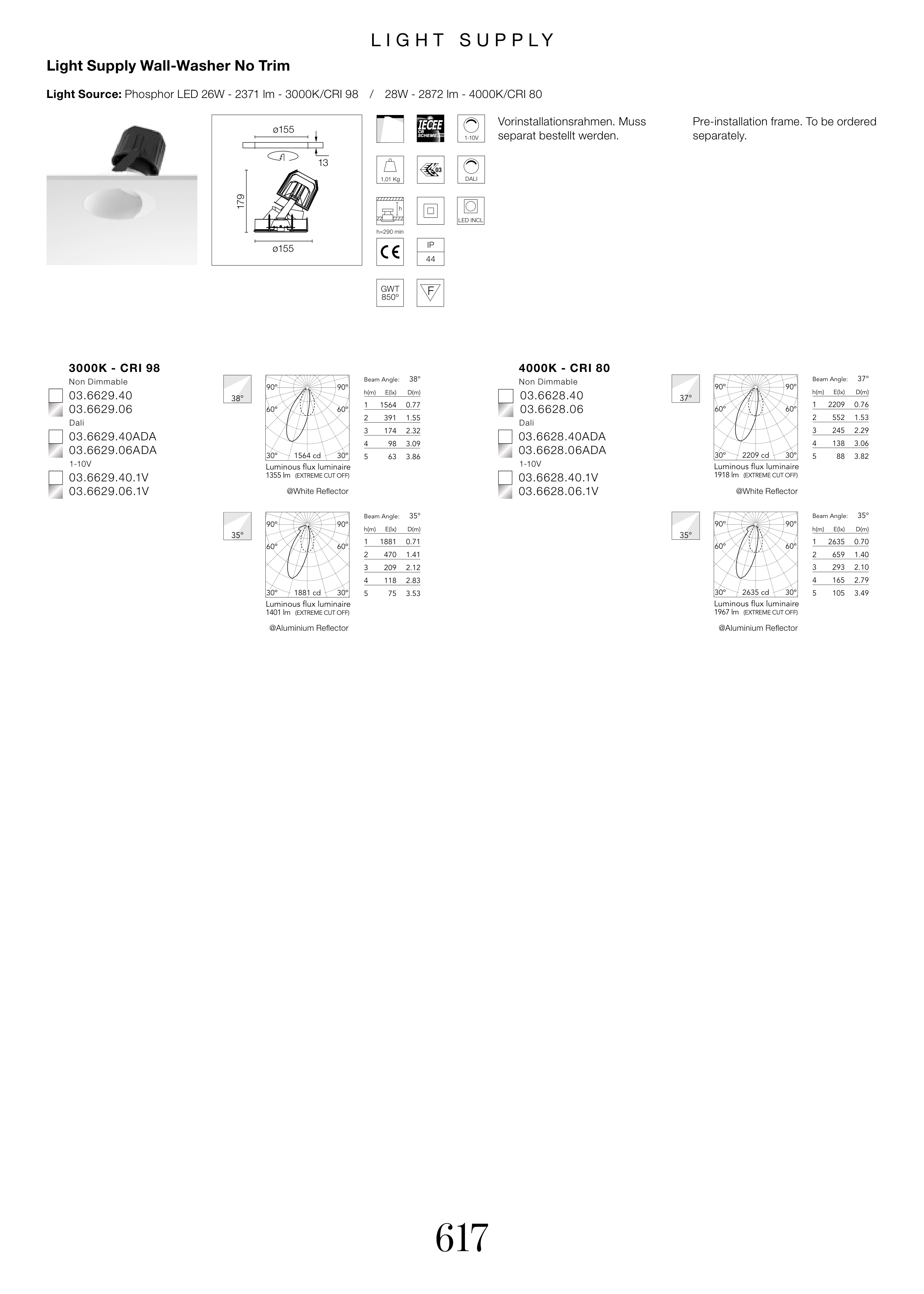 Light Source: Phosphor LED 26W - 2371 lm - 3000K/CRI 98 / 28W - 2872 lm - 4000K/CRI 80