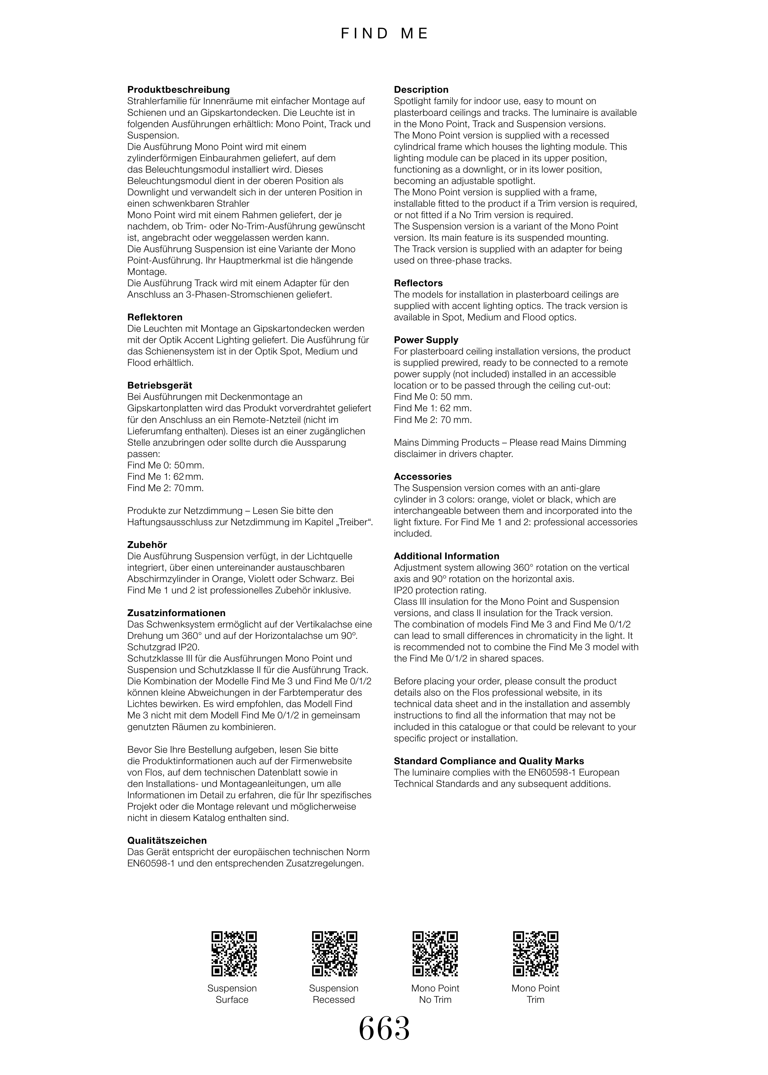 light fixture. For Find Me 1 and 2: professional accessories
