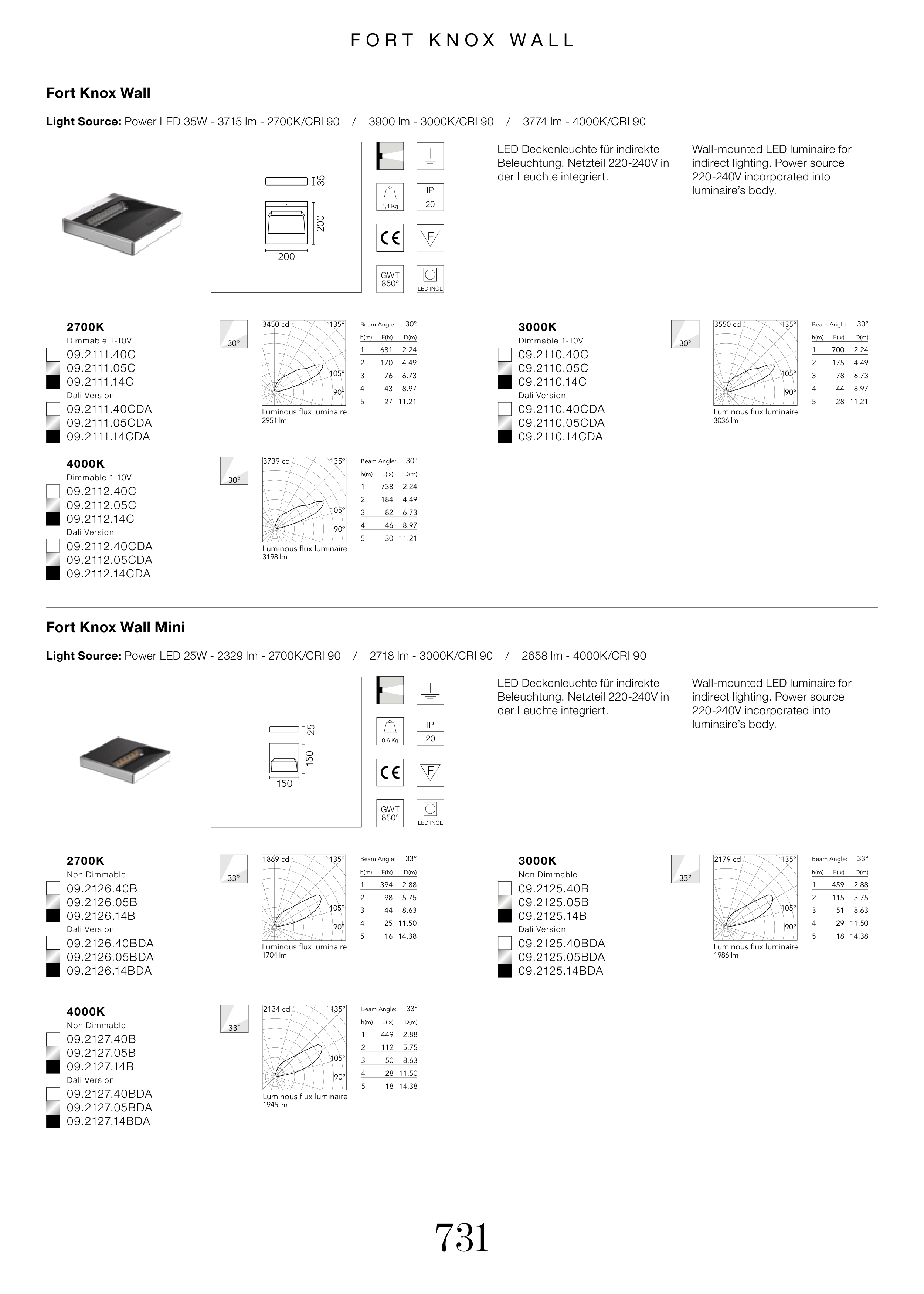 Light Source: Power LED 35W - 3715 lm - 2700K/CRI 90 / 3900 lm - 3000K/CRI 90 / 3774 lm - 4000K/CRI 90