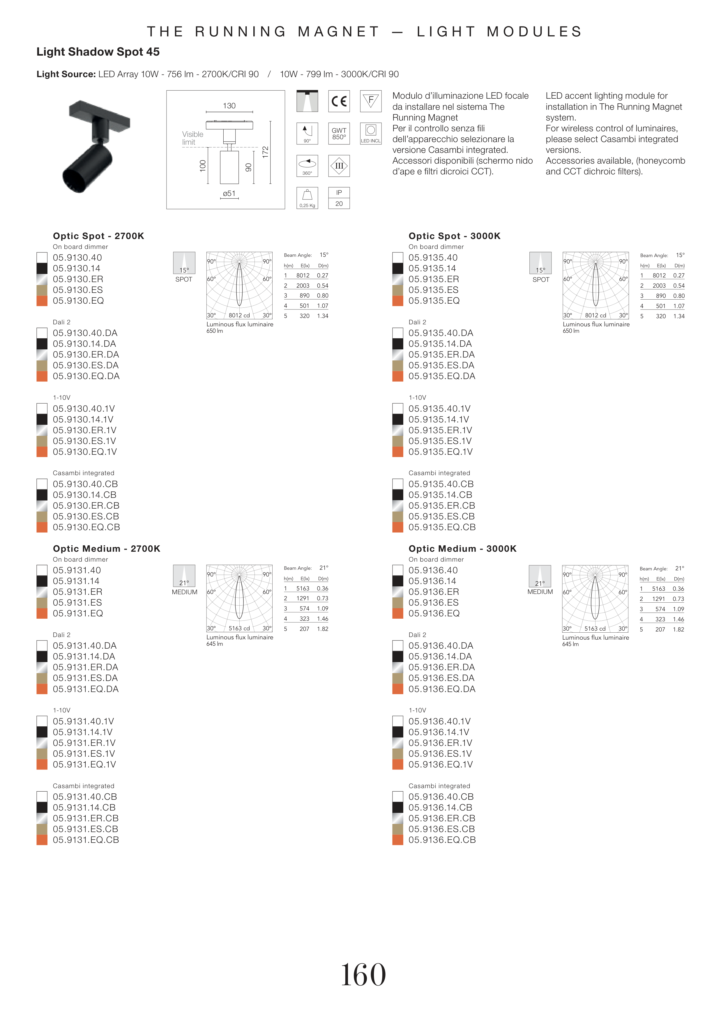 Light Source: LED Array 10W - 756 lm - 2700K/CRI 90 / 10W - 799 lm - 3000K/CRI 90