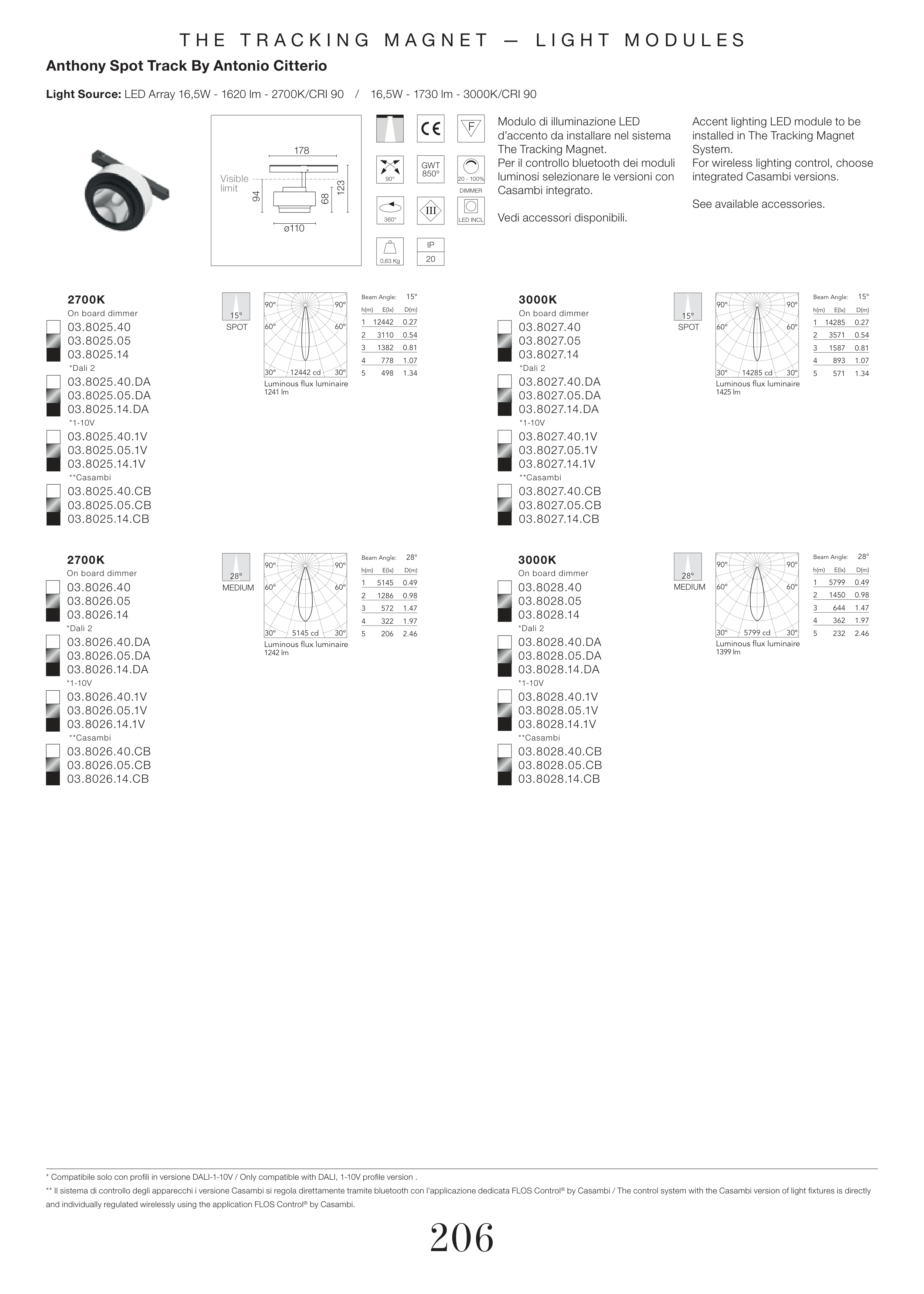 ** Il sistema di controllo degli apparecchi i versione Casambi si regola direttamente tramite bluetooth con l'applicazione dedicata FLOS Control® by Casambi / The control system with the Casambi version of light fixtures is directly