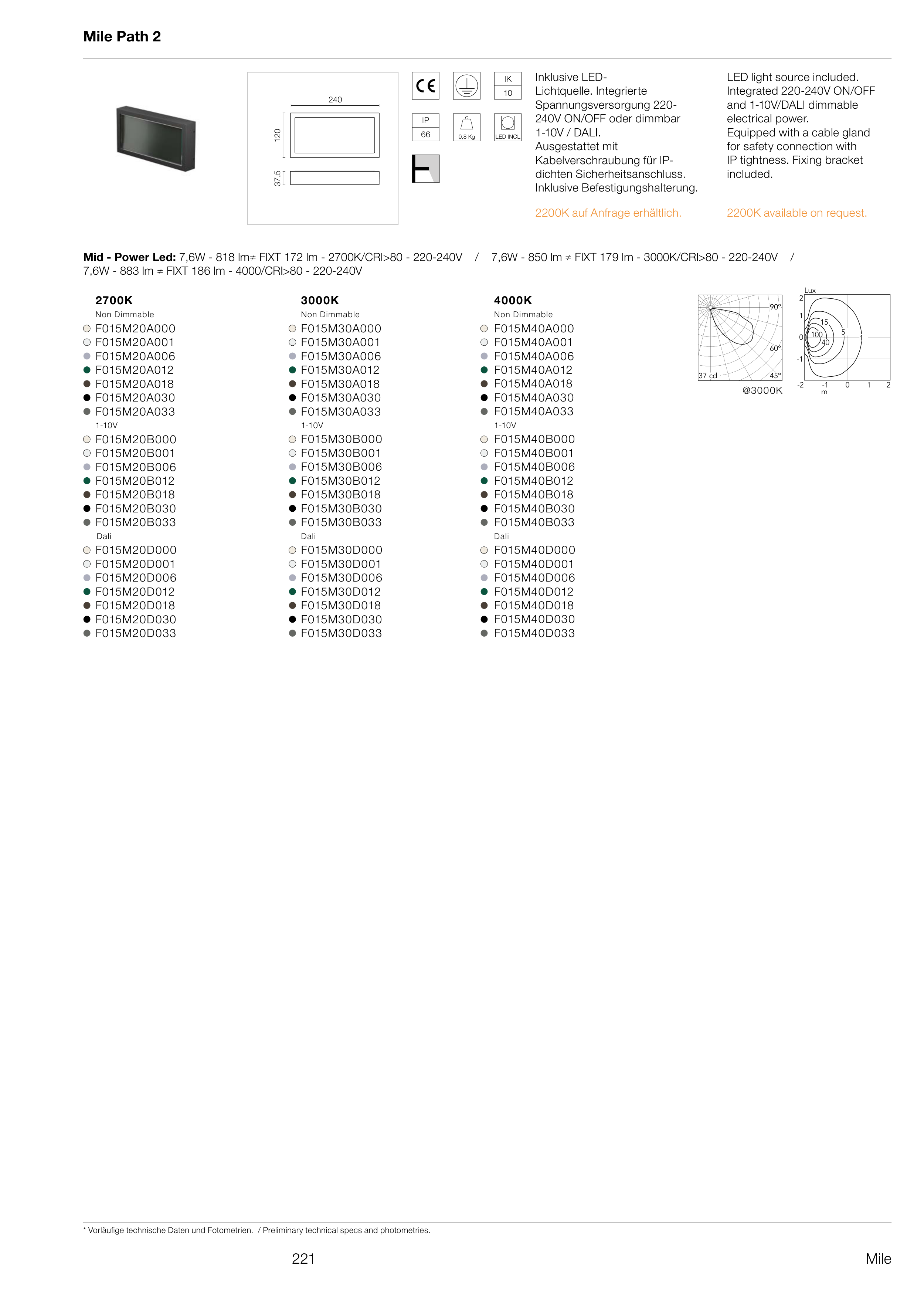 * Vorläufige technische Daten und Fotometrien. / Preliminary technical specs and photometries.