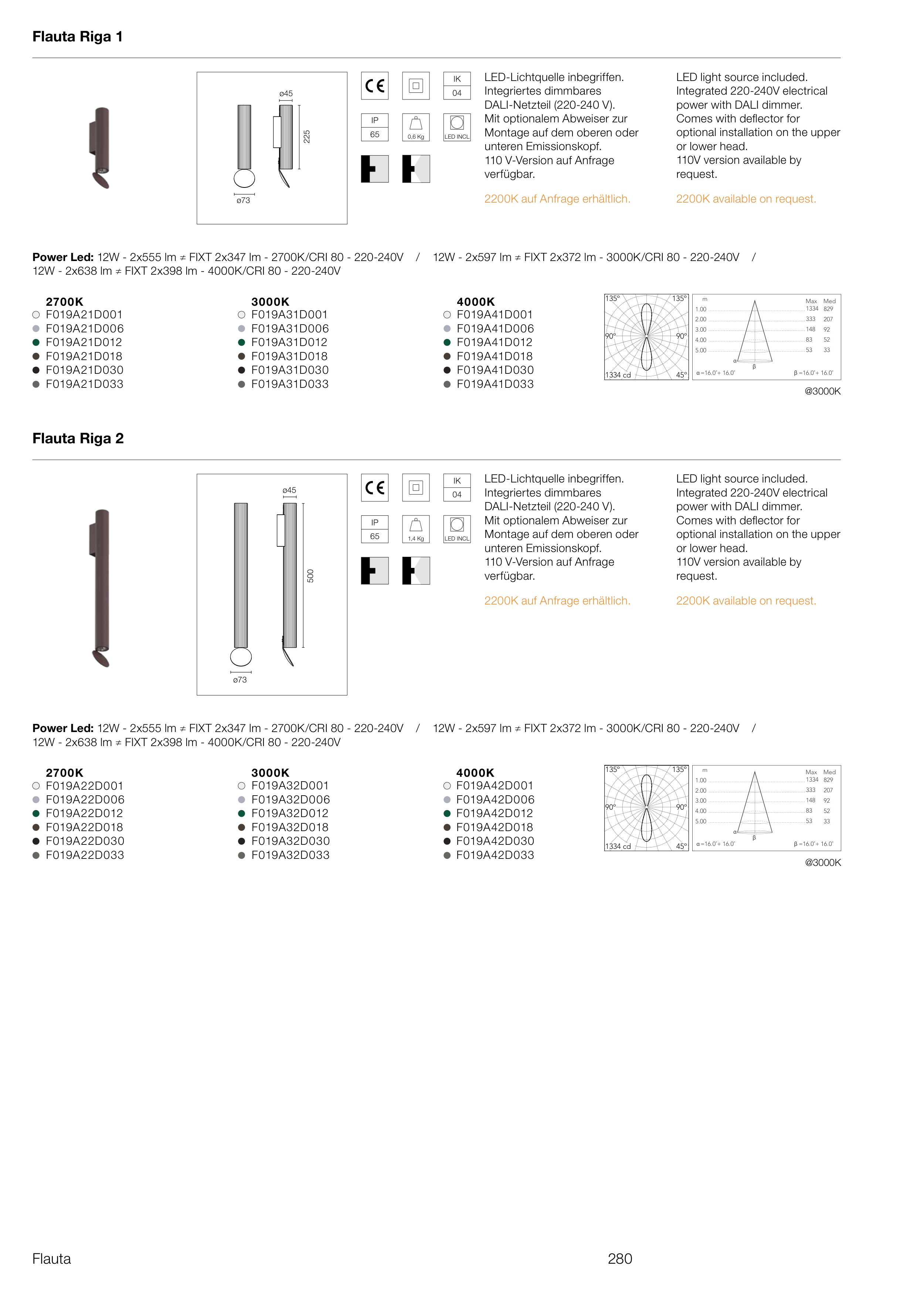 Power Led: 12W - 2x555 lm ≠ FIXT 2x347 lm - 2700K/CRI 80 - 220-240V / 12W - 2x597 lm ≠ FIXT 2x372 lm - 3000K/CRI 80 - 220-240V /