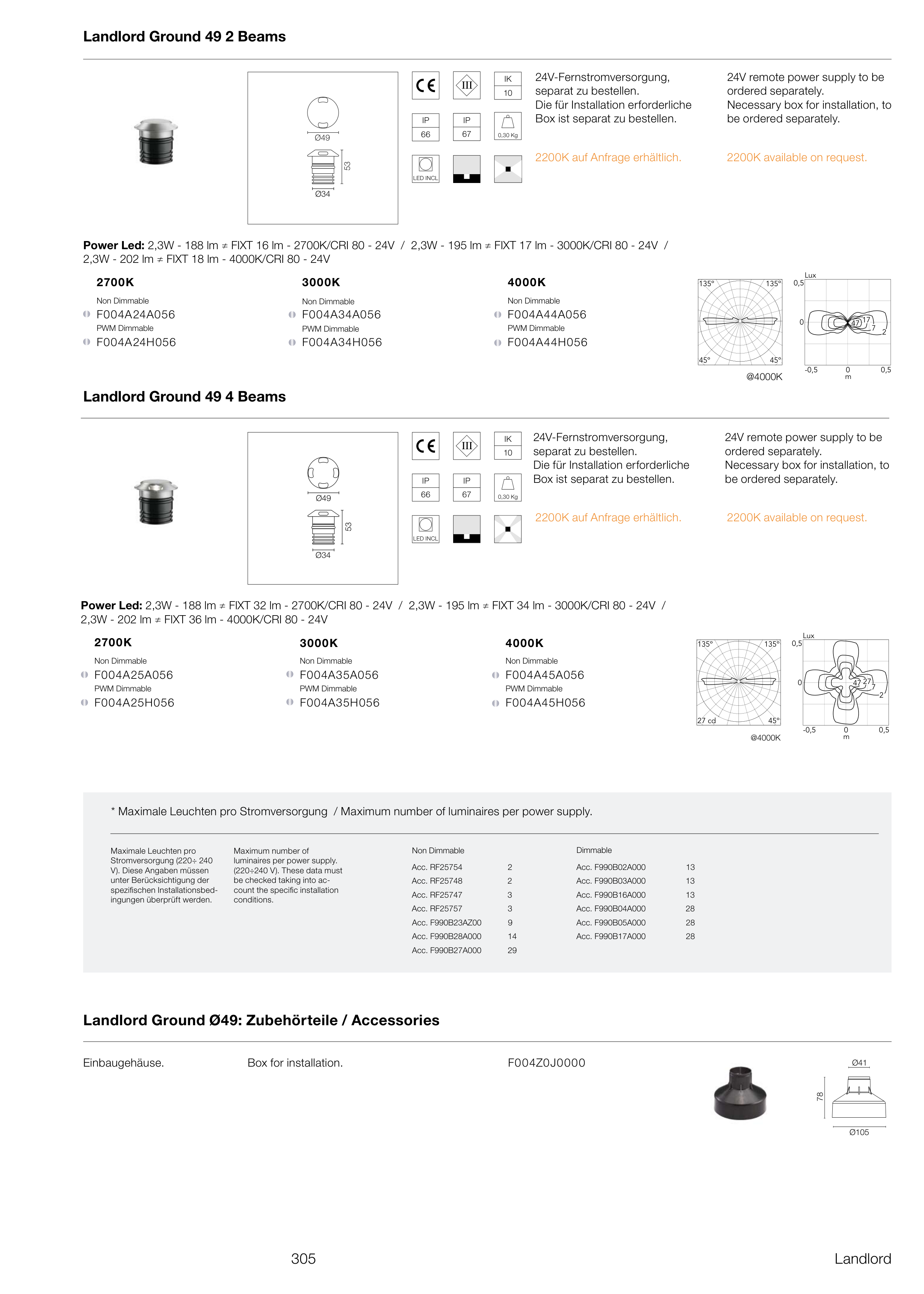 * Maximale Leuchten pro Stromversorgung / Maximum number of luminaires per power supply.