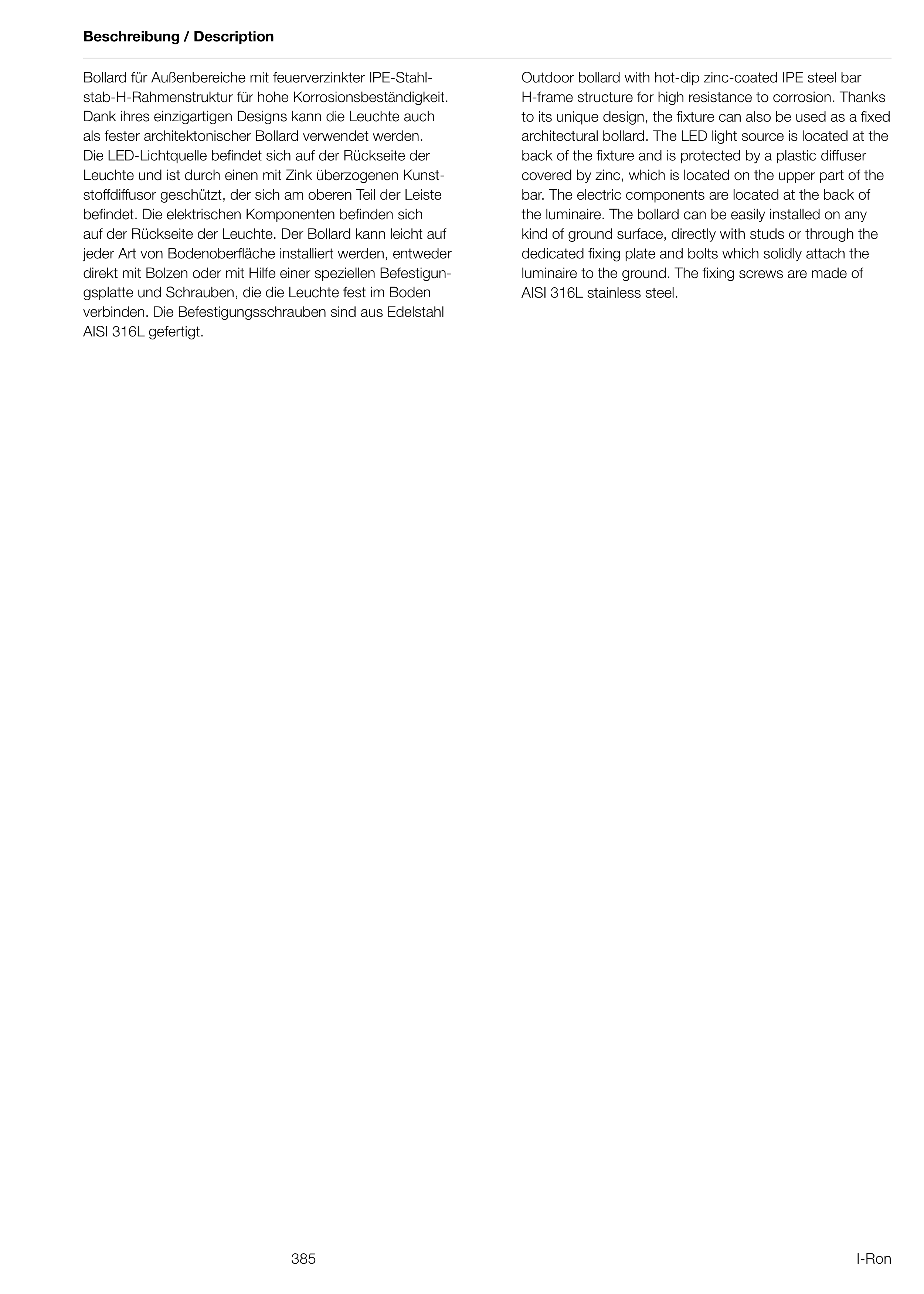 Bollard für Außenbereiche mit feuerverzinkter IPE-Stahl-