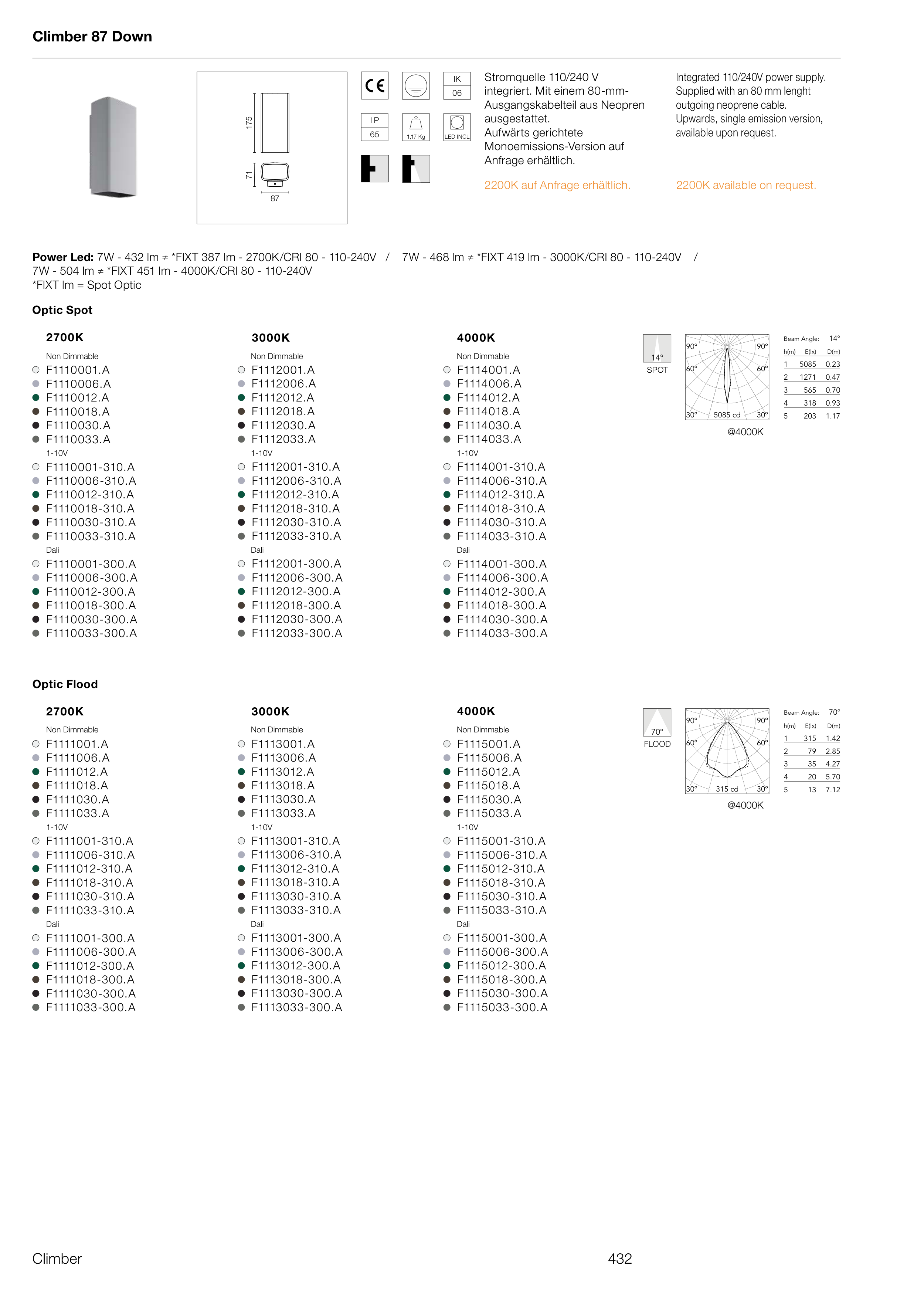 Power Led: 7W - 432 lm ≠ *FIXT 387 lm - 2700K/CRI 80 - 110-240V / 7W - 468 lm ≠ *FIXT 419 lm - 3000K/CRI 80 - 110-240V /