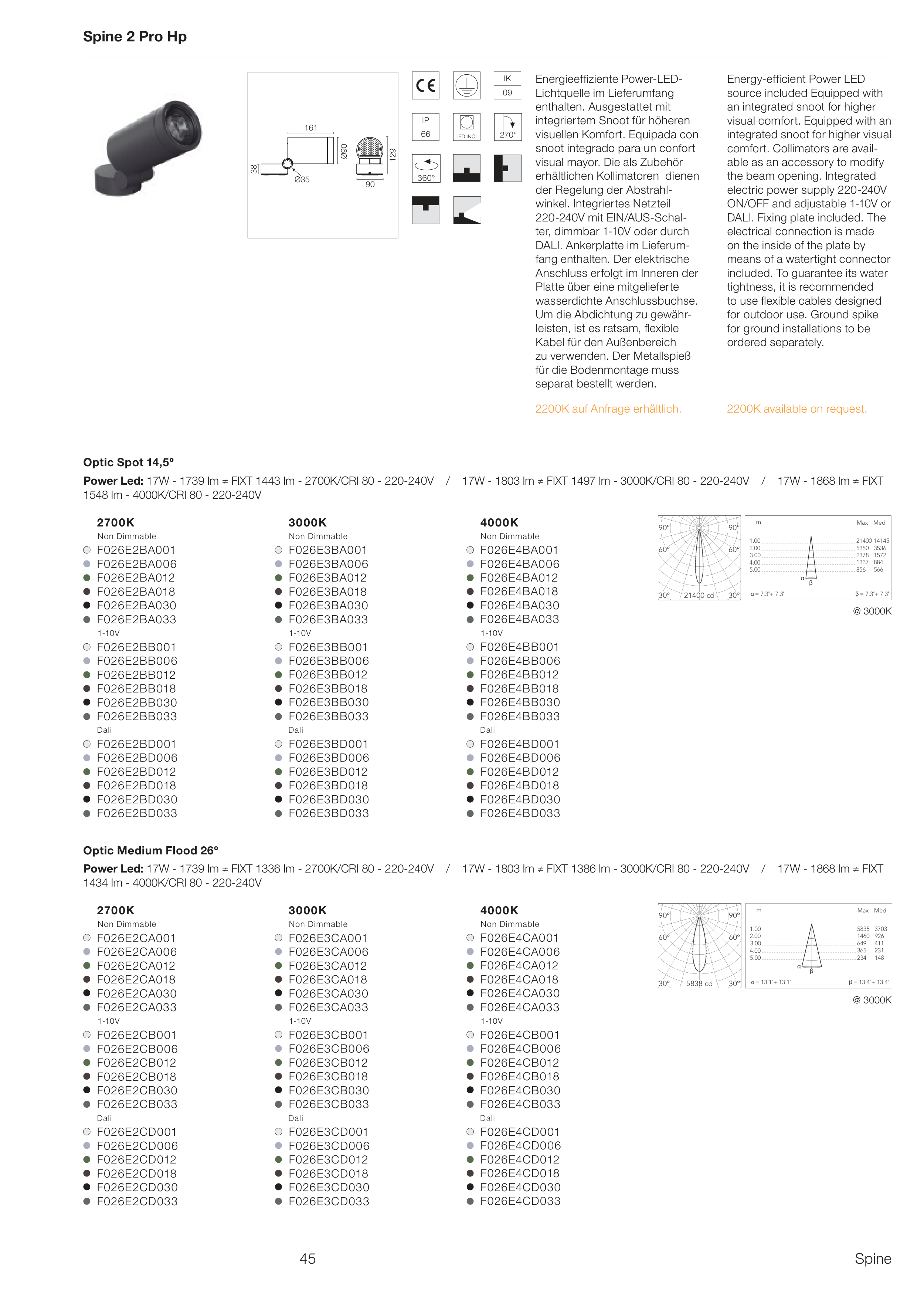 Power Led: 17W - 1739 lm ≠ FIXT 1443 lm - 2700K/CRI 80 - 220-240V / 17W - 1803 lm ≠ FIXT 1497 lm - 3000K/CRI 80 - 220-240V / 17W - 1868 lm ≠ FIXT