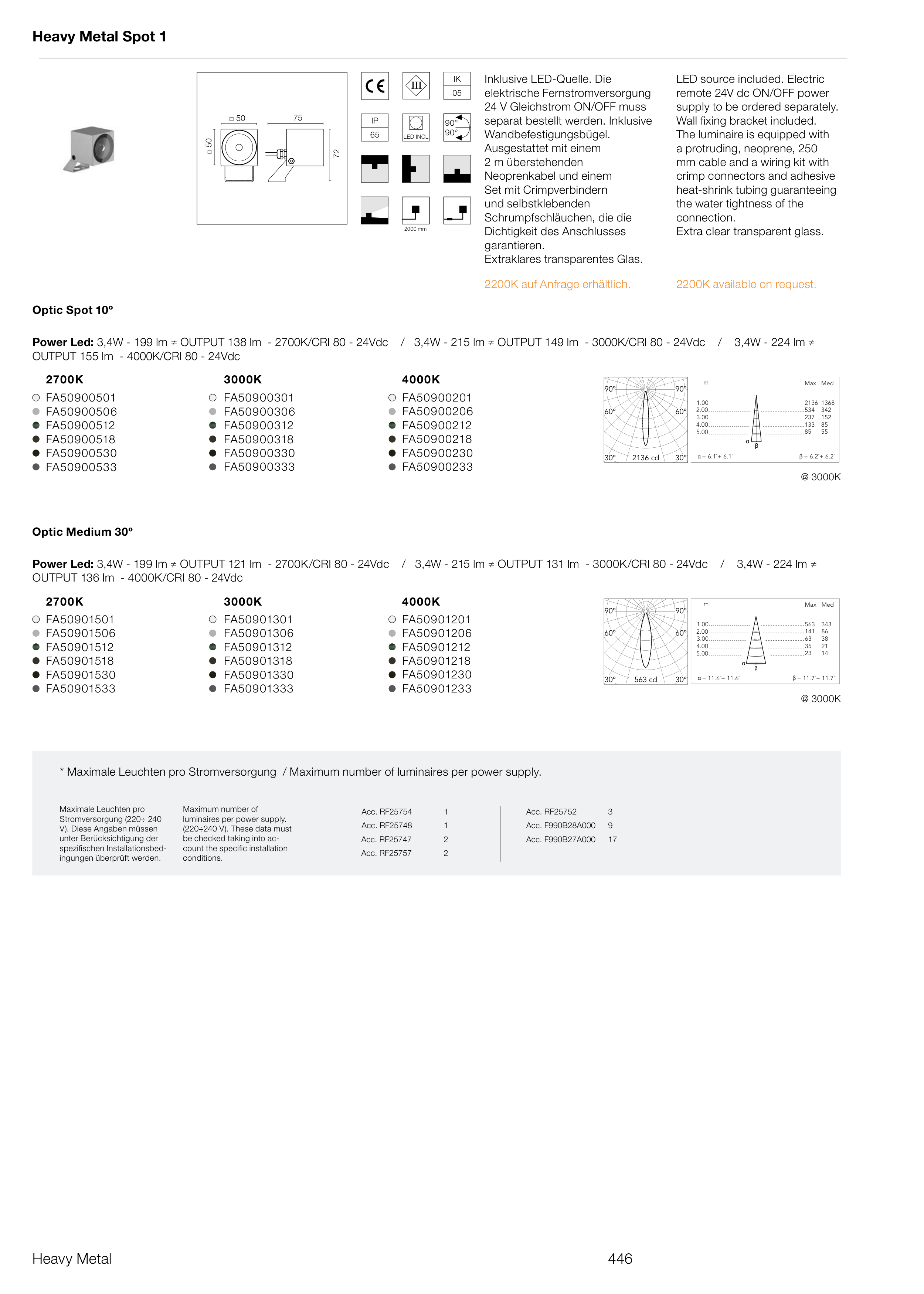 * Maximale Leuchten pro Stromversorgung / Maximum number of luminaires per power supply.