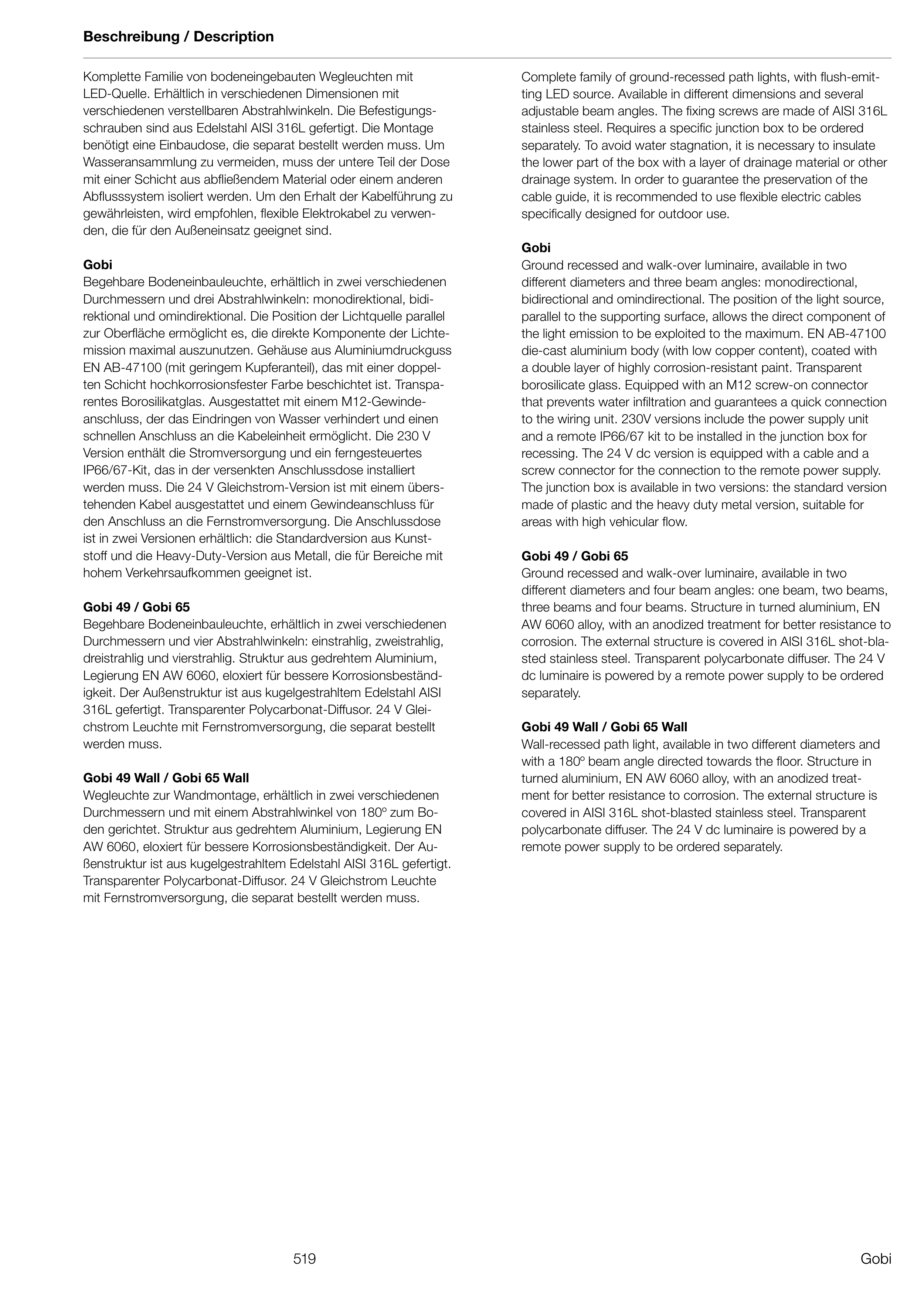 adjustable beam angles. The fixing screws are made of AISI 316L