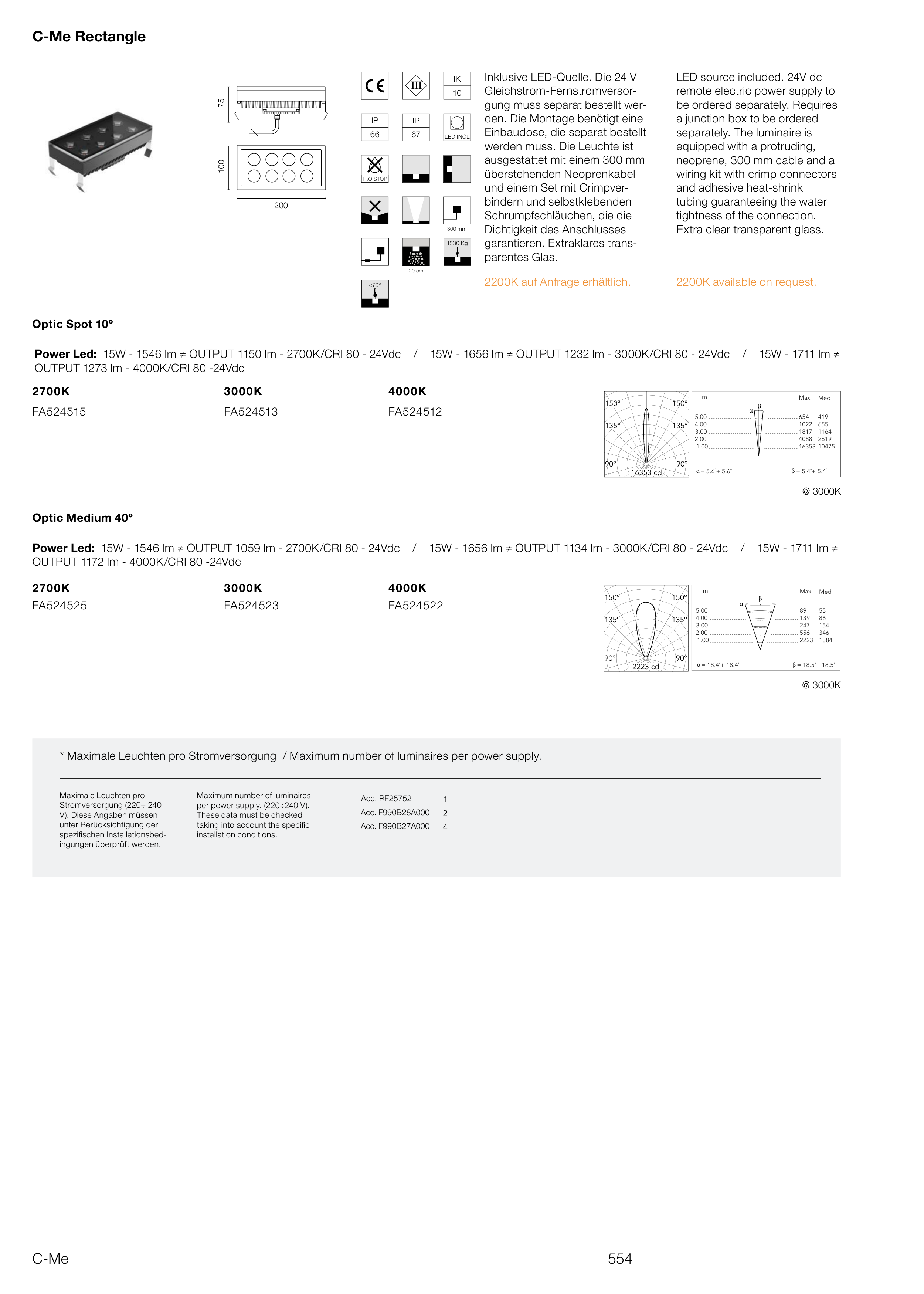 Power Led: 15W - 1546 lm ≠ OUTPUT 1059 lm - 2700K/CRI 80 - 24Vdc / 15W - 1656 lm ≠ OUTPUT 1134 lm - 3000K/CRI 80 - 24Vdc / 15W - 1711 lm ≠