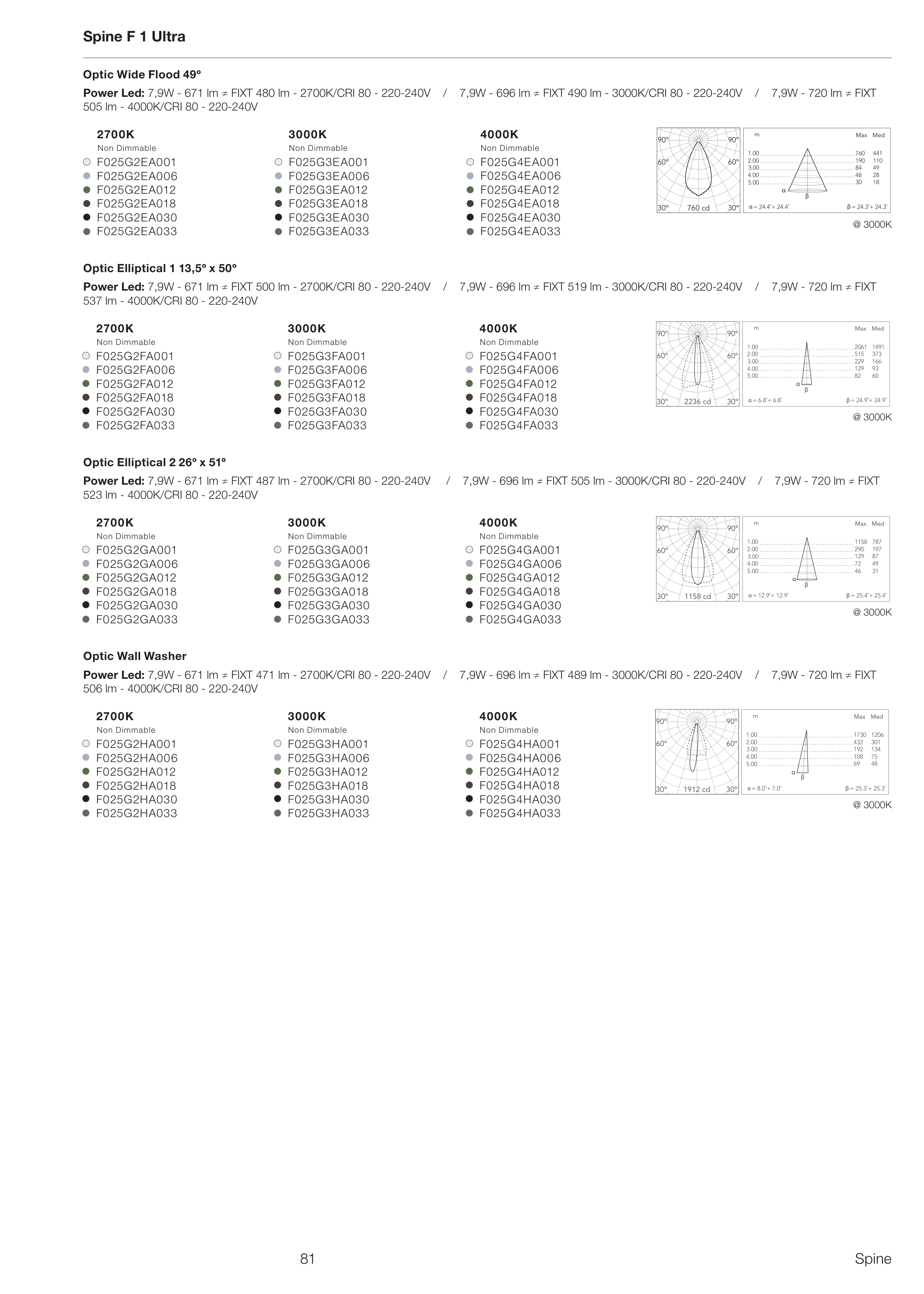 Power Led: 7,9W - 671 lm ≠ FIXT 487 lm - 2700K/CRI 80 - 220-240V / 7,9W - 696 lm ≠ FIXT 505 lm - 3000K/CRI 80 - 220-240V / 7,9W - 720 lm ≠ FIXT